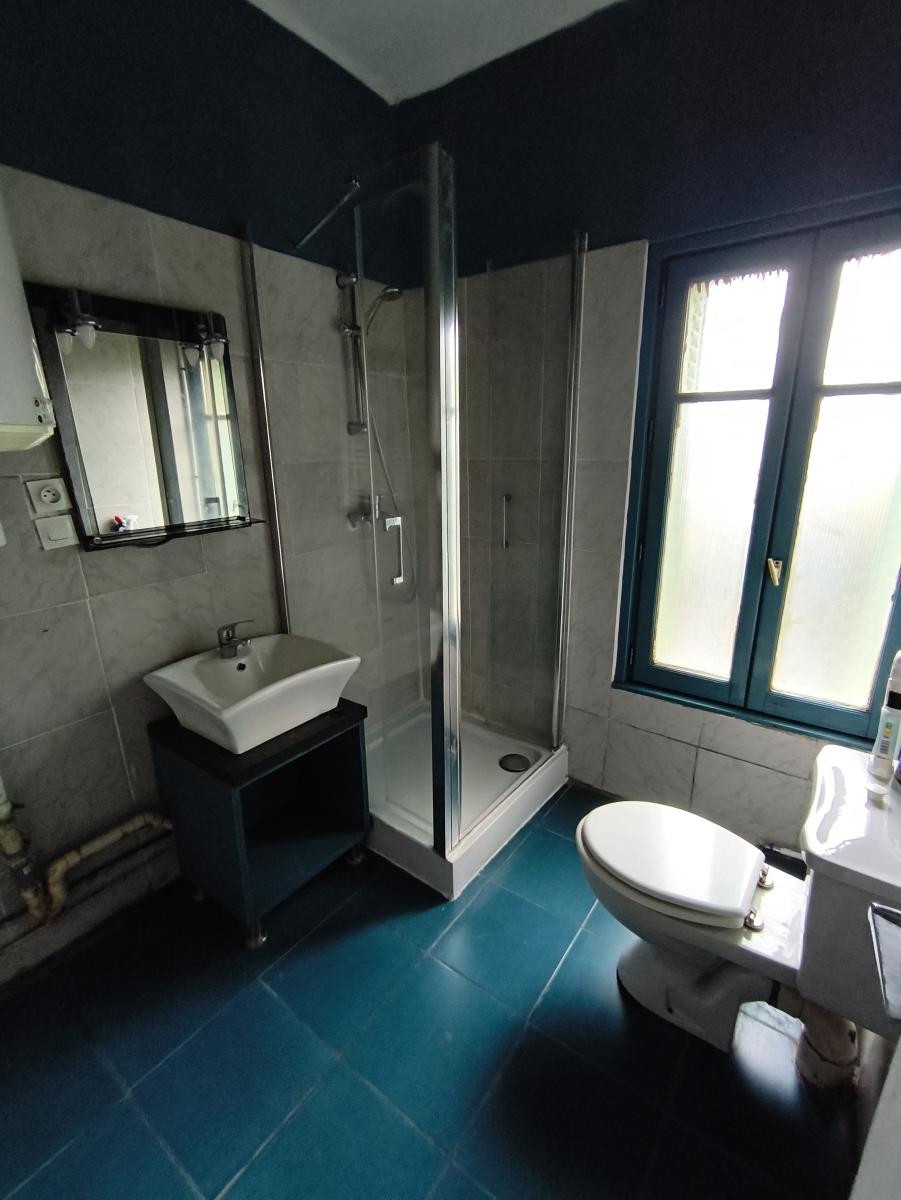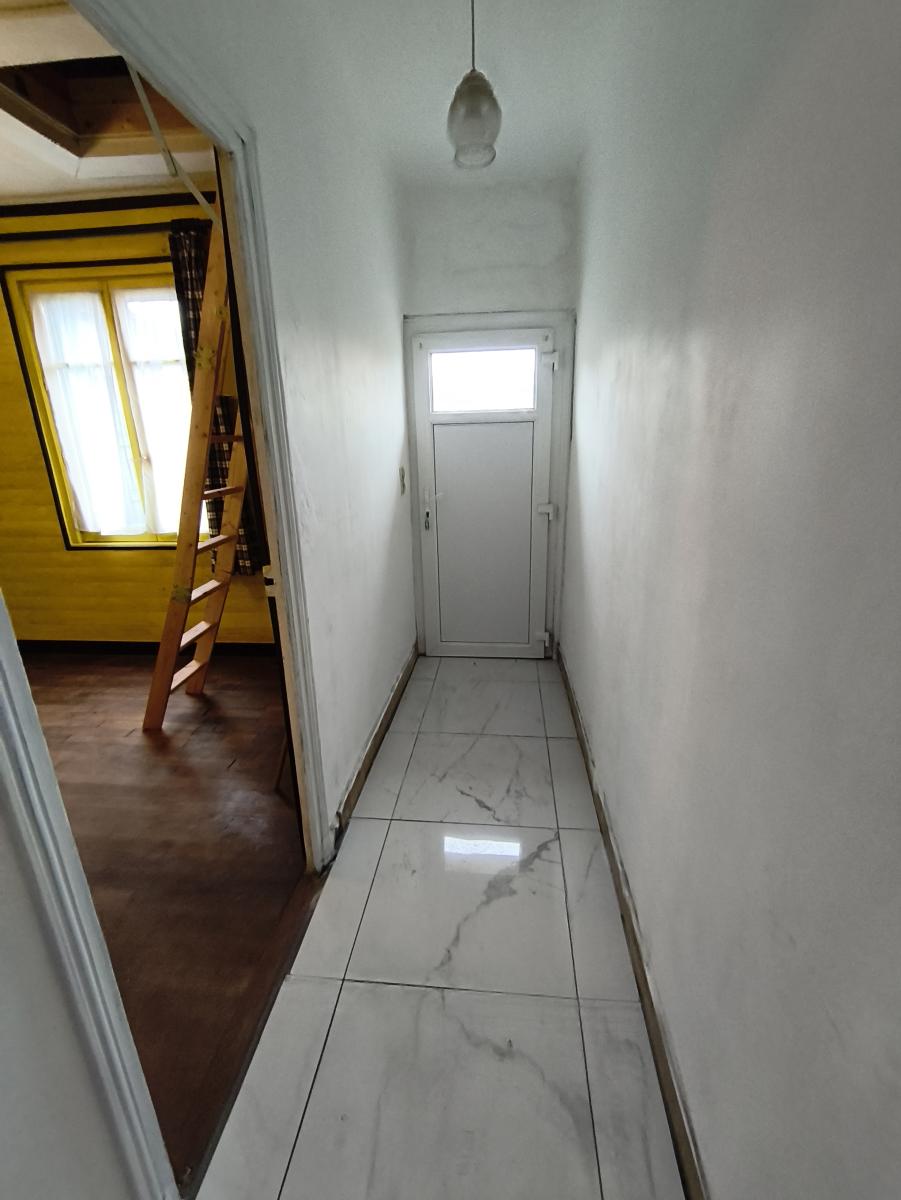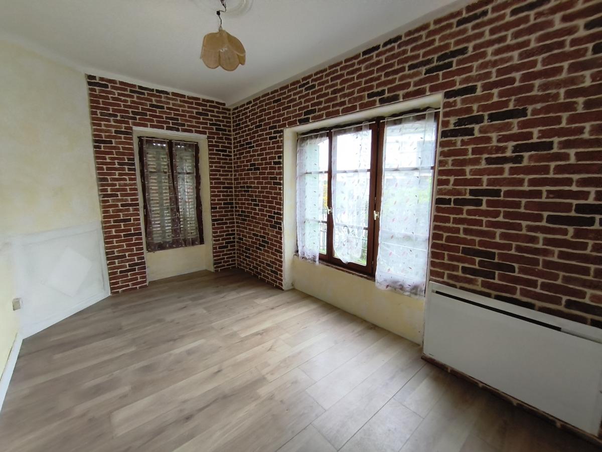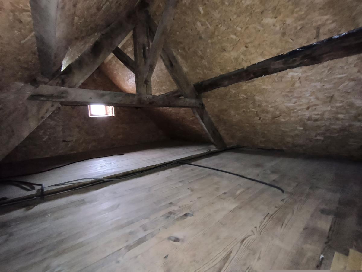 Maison de ville de 3 pièces principales avec greniers, jardin et garage sur env. 300 m² de terrain. Le rez-de-chaussée est composé d'une entrée, un séjour, une cuisine aménagée, 2 chambres, salle d'eau avec wc, dégagement. A l'étage : 2 greniers. courette et jardin. Remise, garage et emplacement parking. Convecteurs électriques. Classe énergie G.