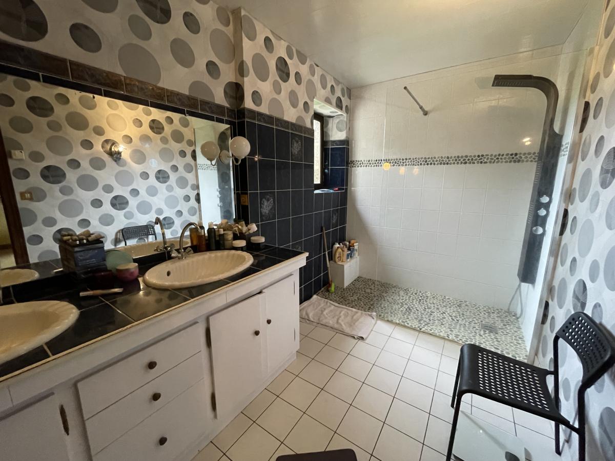 . A l'étage : salon, palier, bureau, 4 chambres, SDB, WC.