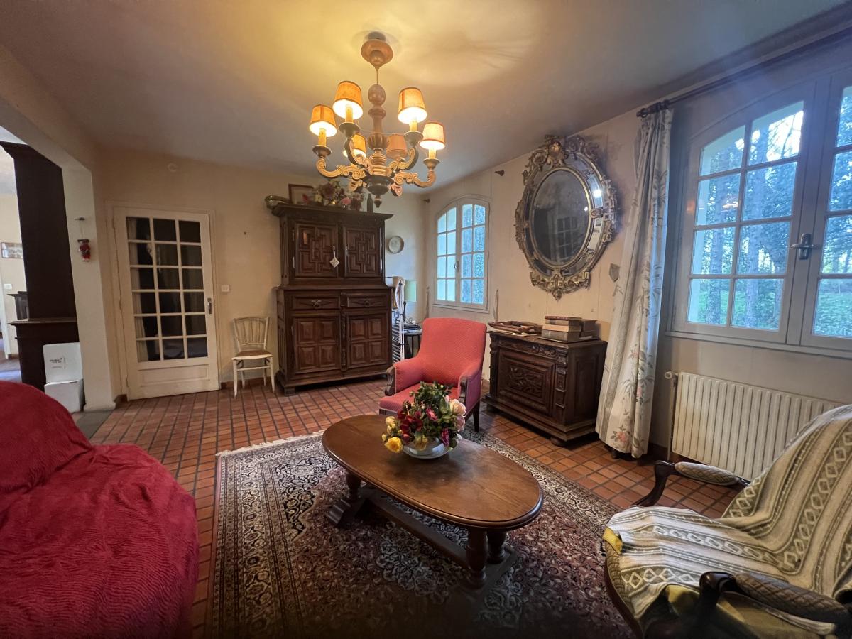 En bordure immédiate de la ville de LA FERTE MACE, maison construite sur parc arboré de 8800 m², comprenant : . Sous-sol complet : 2 chambres chauffées avec salle d'eau/WC, pièce avec cheminée, cave, garage, chaufferie ; . Au rez-de-chaussée : entrée avec placard, cuisine aménagée, séjour/salon de 42 m², autre salon avec cheminée, chambre, WC/lave mains ; . A l'étage : 2 chambres avec chacune couloir sous rampants servant de dressing, salle de bains/douche avec WC. Bâtiment annexe à usage de garage/abri de jardin. Chauffage au fuel (chaudière récente), fenêtres en bois simple vitrage. Maison disposant actuellement d'une fosse septique mais raccordable au tout à l’égout. Pas de voisins immédiats, aucun vis-à-vis.