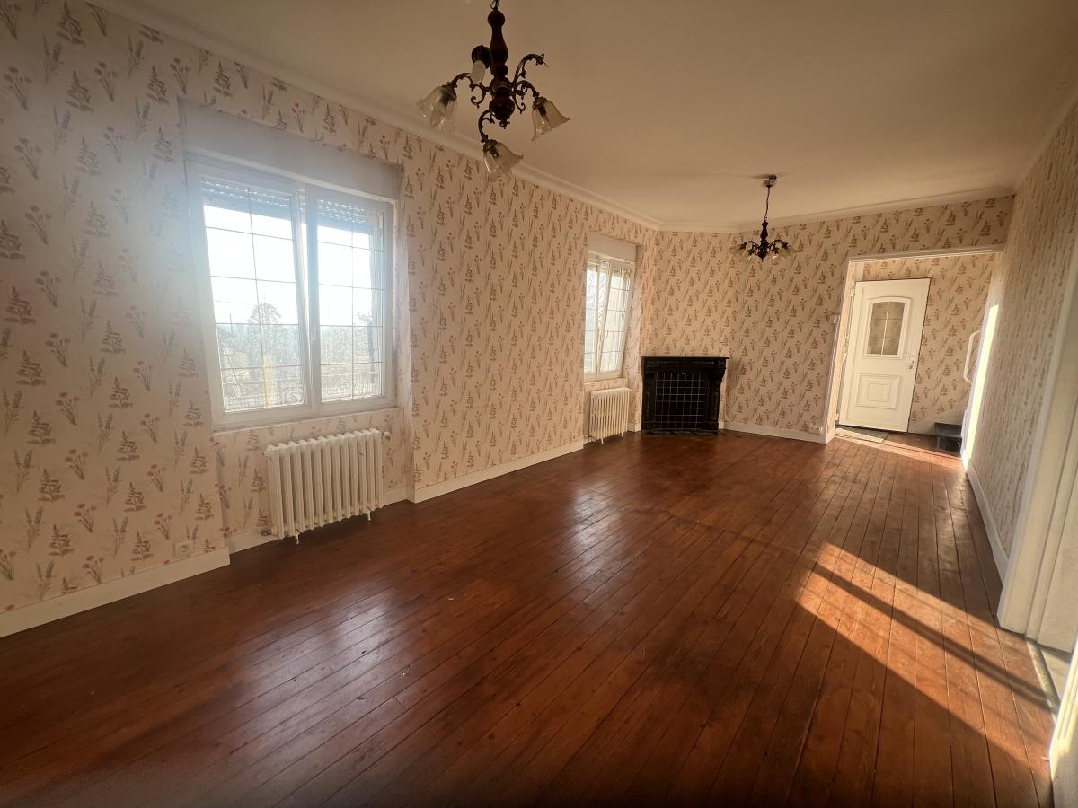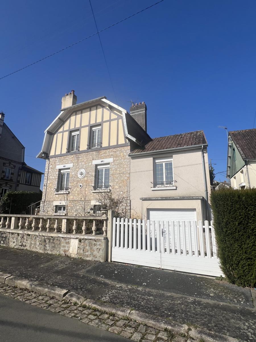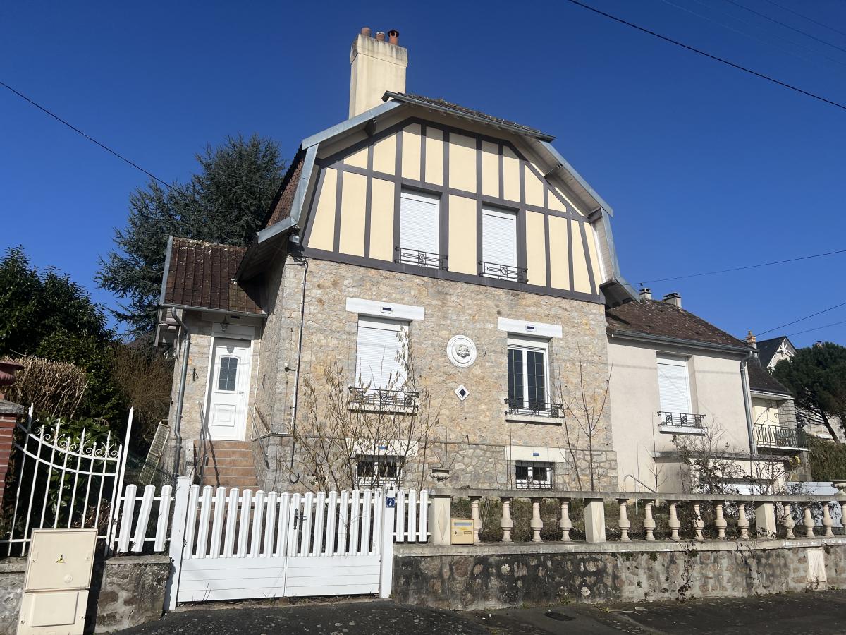 BAGNOLES DE L'ORNE, quartier résidentiel à 5 min à pied des commerces de BAGNOLES CHATEAU, maison de style Bagnolais comprenant : . Au RDC : cuisine, séjour, une chambre, WC avec lavabo. . A l'étage : 2 chambres (rassemblées en une), pièce (ancienne salle d'eau), WC. . Au sous-sol : chaufferie, pièce et salle d'eau chauffées, garage (porte automatisée). Cour et jardin. Travaux à prévoir : présence d'humidité à l'étage due à l'absence de ventilation et de chauffage. Chauffage au gaz de ville. Fenêtres PVC.