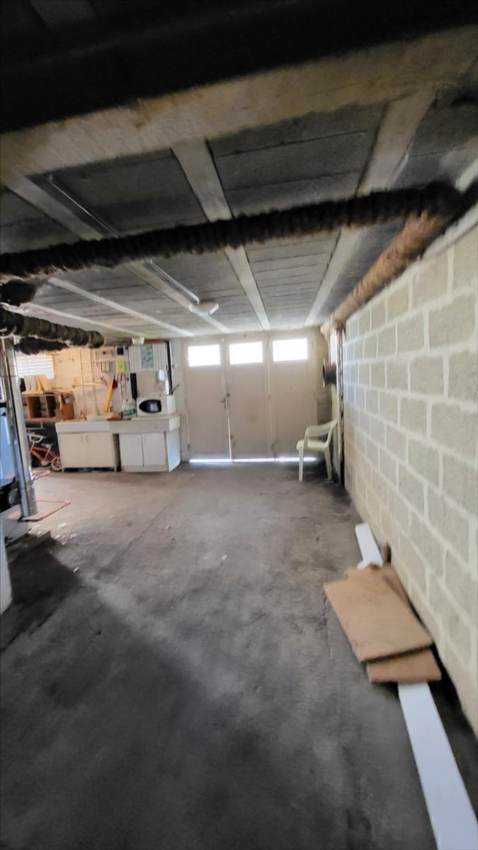 Pavillon surélevé comprenant en rez-de-jardin : garage avec chaufferie (chaudière très récente au fuel), buanderie, atelier, une pièce; au 1er étage : couloir avec placards desservant : séjour, cuisine, trois chambres, salle de douche, wc séparés; tout à l'égout. Volets roulants électriques. Chauffage central au fioul.