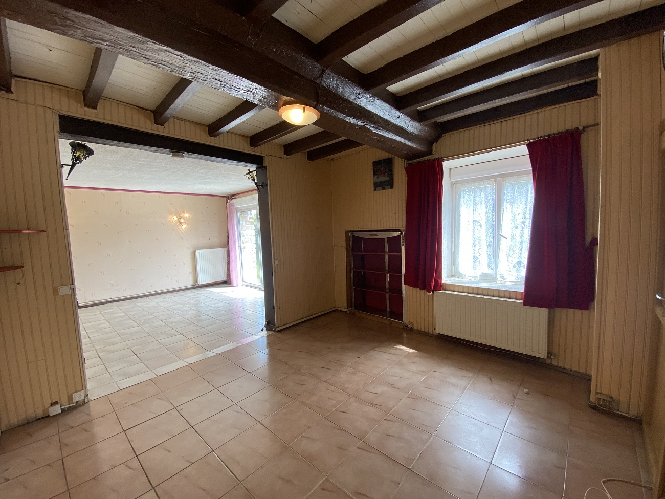 - Double séjour (3,115 m x 3,644 m et 4,176m x 4,839m) fenêtre donnant à l’avant de la maison, une baie vitrée, poutre apparent, lambris au mur, trois radiateurs,