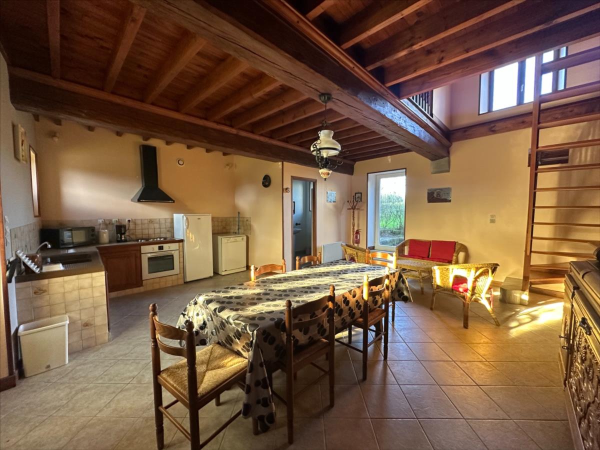 Le gîte est non attentant à la maison principale, il se situe sur l'arrière, il dispose de sa propre terrasse et de son jardin sans vis à vis sur la maison.Il offre environ 83m², une pièce à vivre avec cuisine ouverte de 35m², une salle d'eau + wc. A l'étage : Une mezzanine et deux grandes chambres. Classe énergie E (326) - GES B (10) - Date de réalisation des diagnostics le 11/06/2025 - Estimation des coûts annuels d'énergie du logement entre 2060€ et 2830€ par an - prix moyens des énergies indexés sur les années 2021, 2022, 2023 (abonnements compris) -Diverses dépendances avec grenier attenant au gîte, garage, celliers.Une piscine couverte vient compléter cet ensemble.Terrain arboré, mini golf, une mare. De belles prestations pour cet ensemble immobilier.