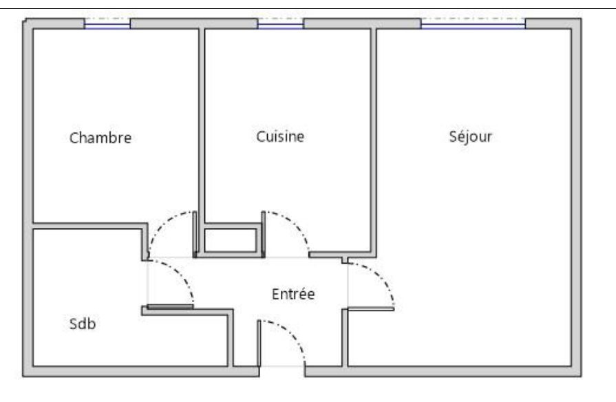 Un APPARTEMENT avec ascenseur situé au troisième étage du bâtiment comprenant : entrée, dégagement, salle de bains avec wc, cuisine, une chambre, séjour.
