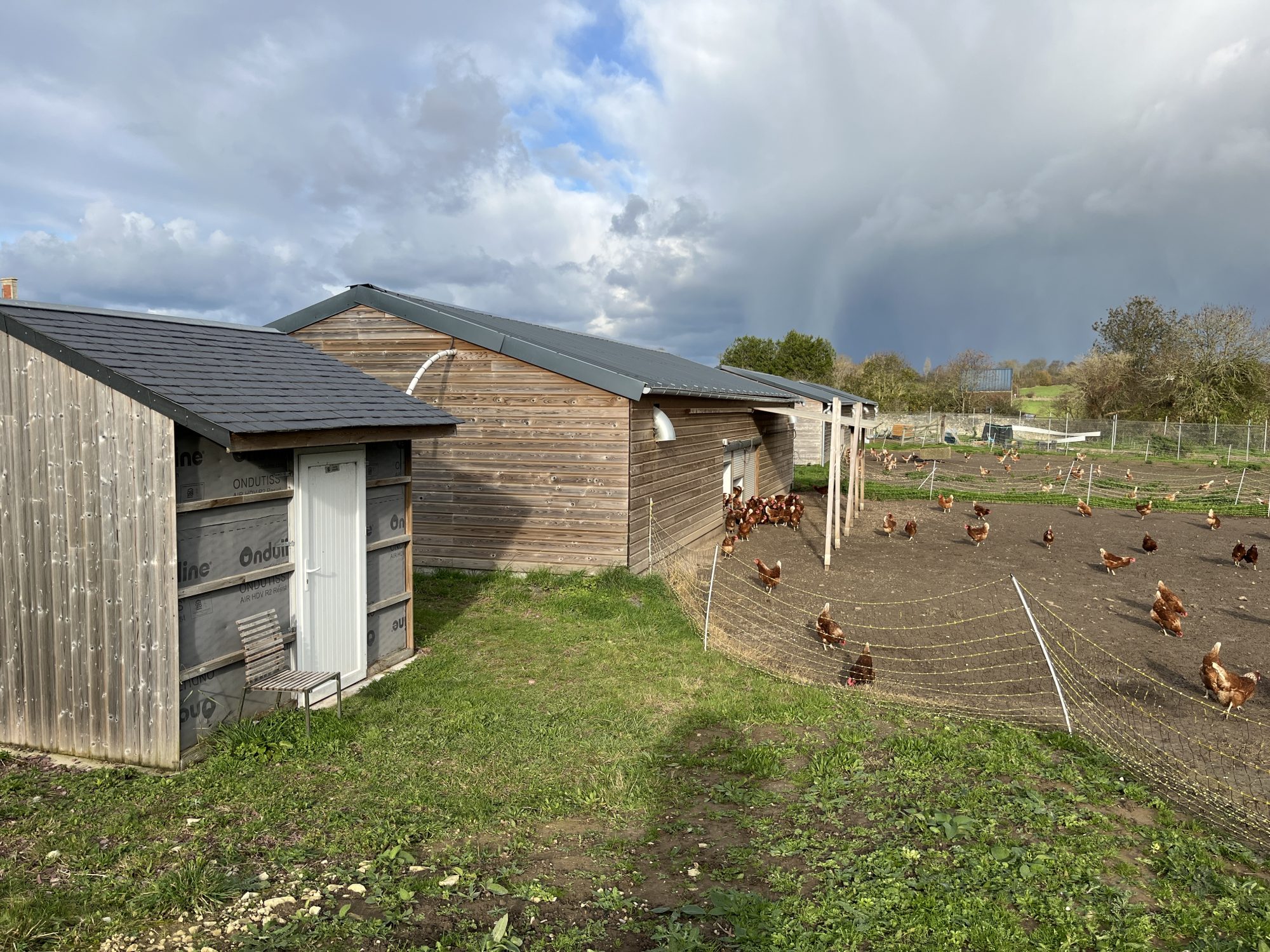 - 3 poulaillers de 120 m² avec une capacité maximale de 1650 poules pondeuses, chacun équipés d'un système d'alimentation avec distribution automatisé,