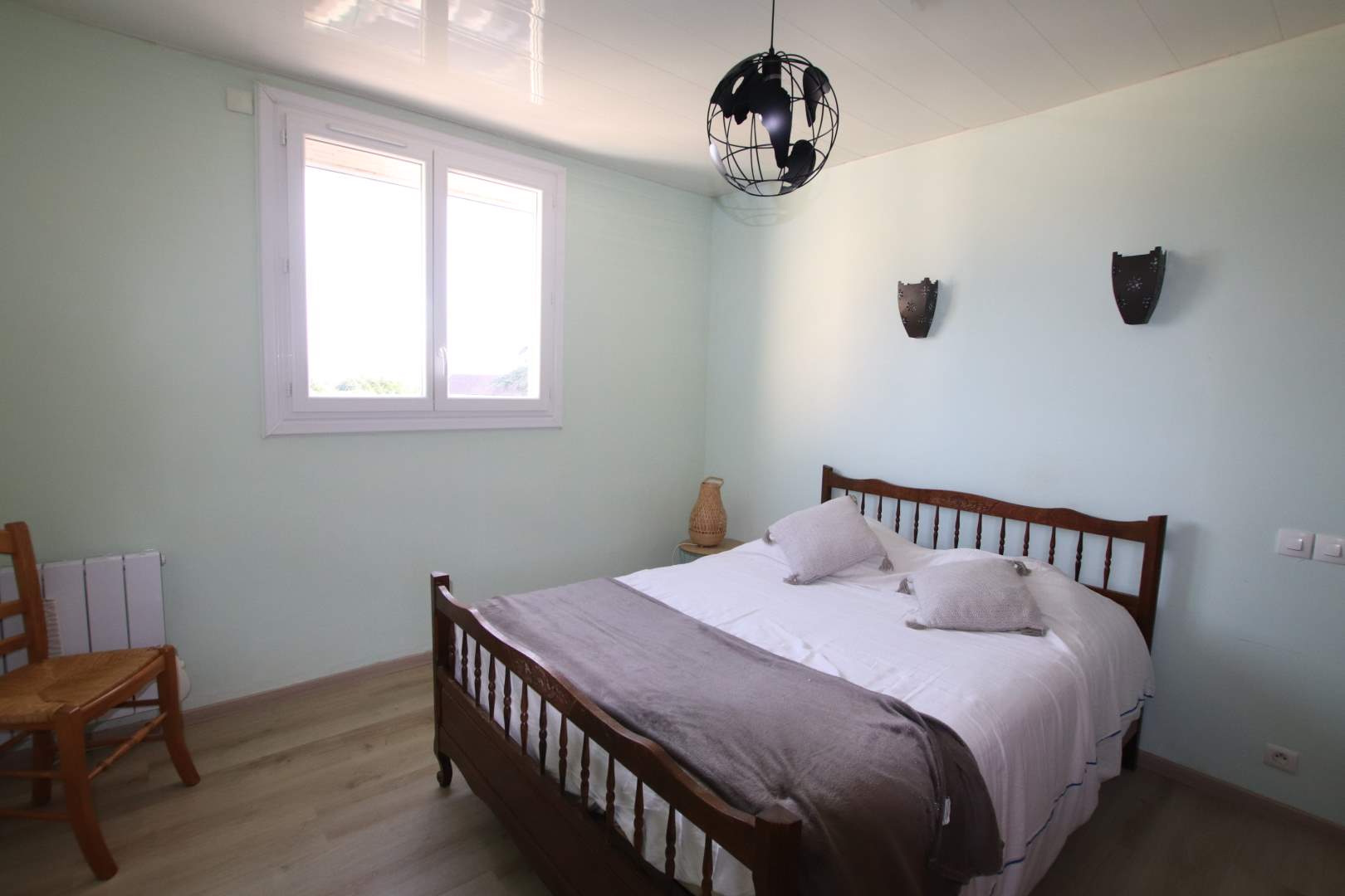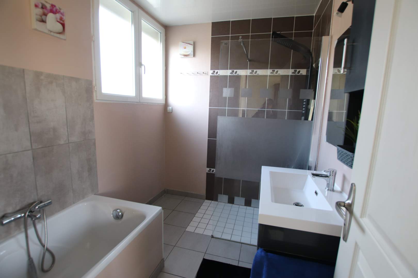 Maison proche des commerces, des écoles et autres commodités, composée, au rez-de-chaussée, entrée dans salon ouvert sur une cuisine aménagée et équipée, salle à manger, cellier/buanderie, salle de bains, WC, à l'étage : 3 chambres. Terrasse carrelée. Garage/atelier. Pelouse.