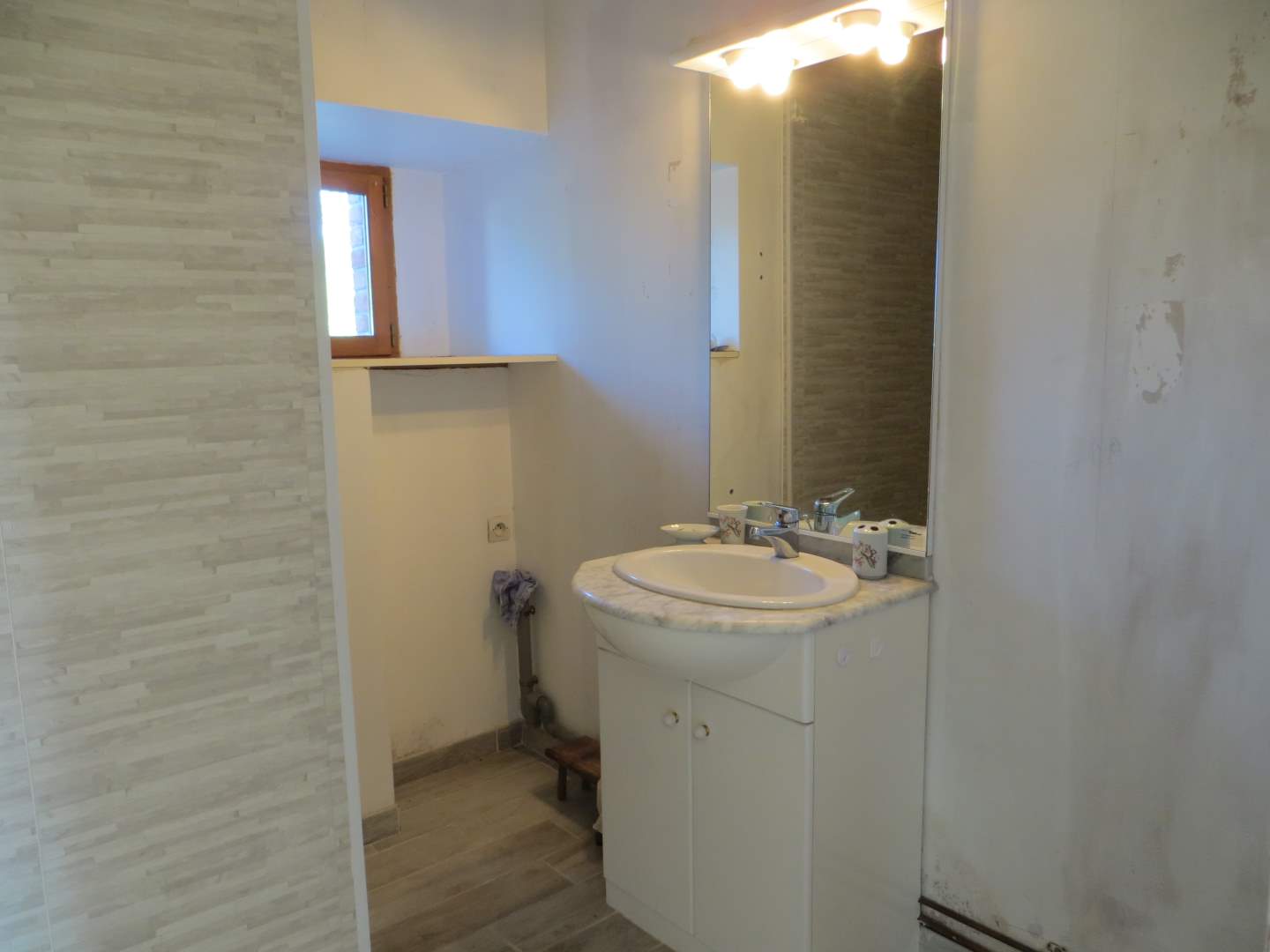 A l’étage : chambre, grenier aménageable.