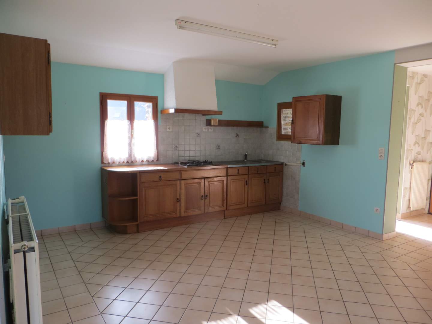 En rez de chaussée : salle à manger/salon, cuisine, salle d’eau, wc, garage.