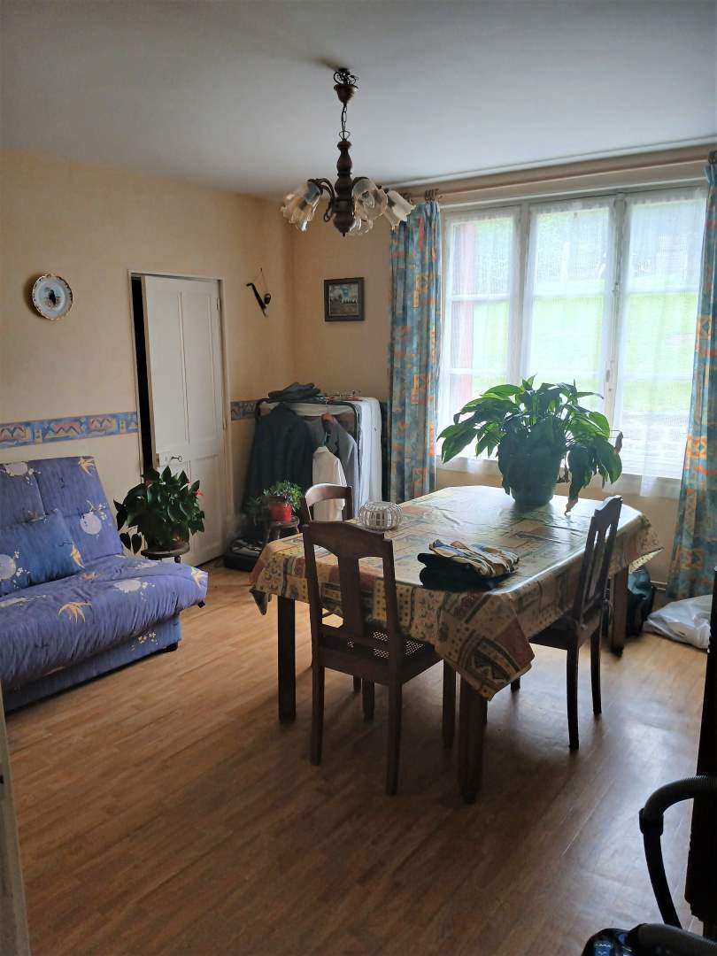 - En rez de chaussée : cuisine, salle / séjour,couloir desservant deux chambres, salle d’eau, wc, salle.