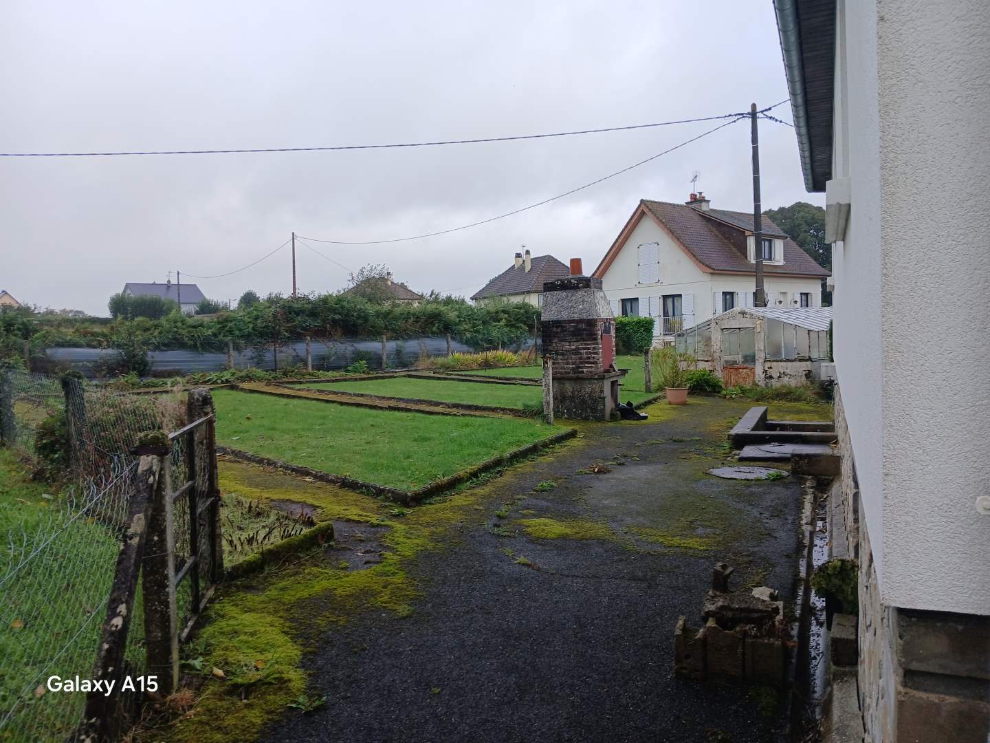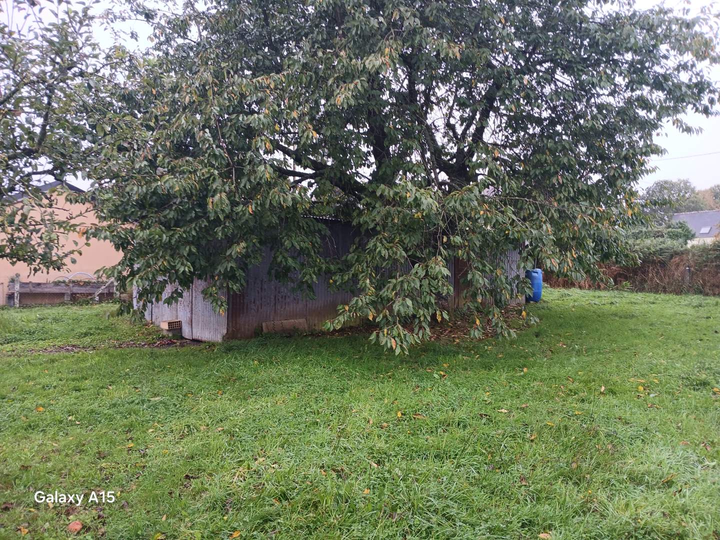 Jardin. Un bâtiment en tôles.