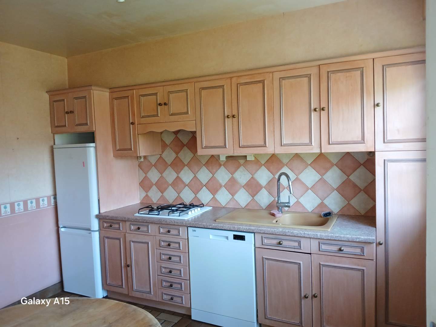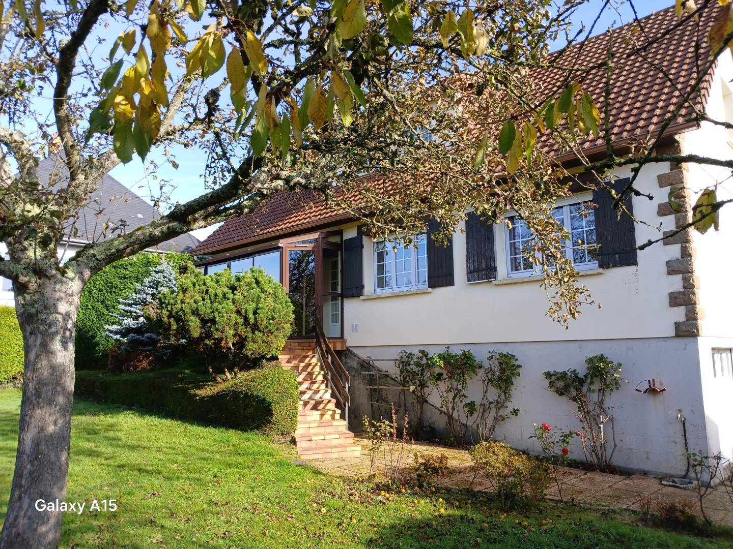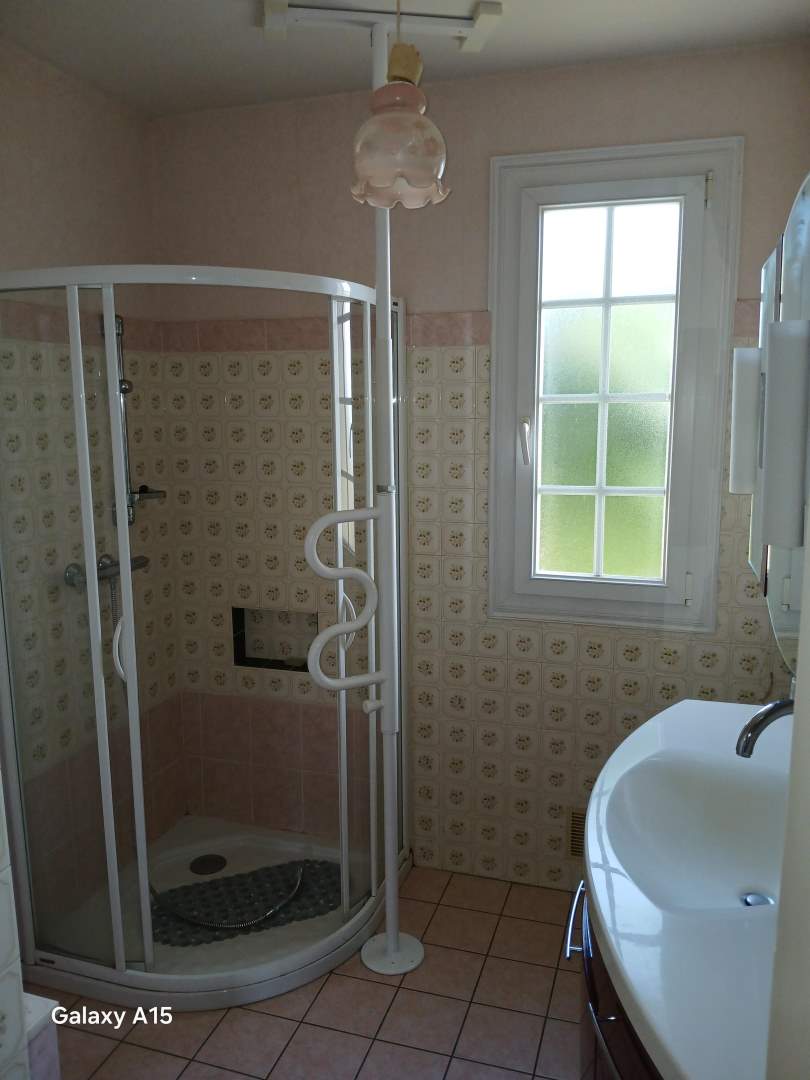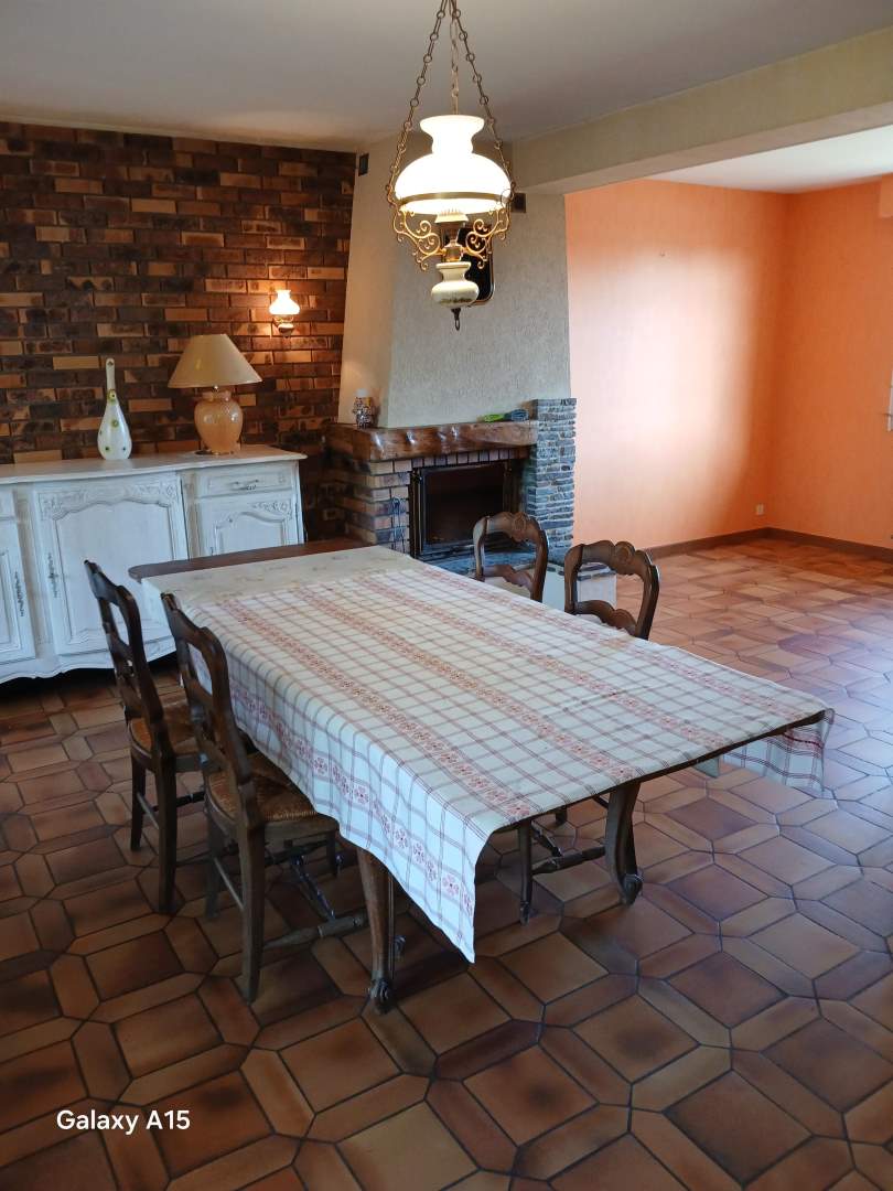 - En rez de chaussée : entrée, cuisine, salle à manger et salon avec cheminée et insert, couloir, deux chambres, salle d’eau, wc avec lavabo. Veranda.