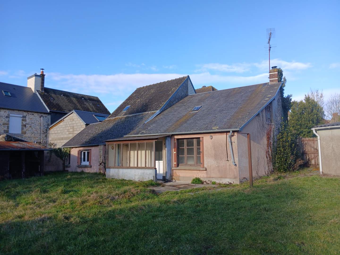 BOURG de LA FERRIERE AUX ETANGS : Maison d’habitation comprenant : Cuisine, dégagement, salle d’eau et wc, deux chambres, salle à manger, coin buanderie. Dépendance, garage.