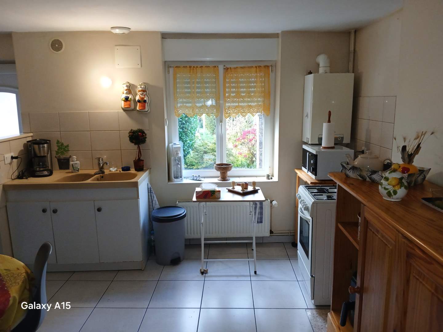 Salle à manger et salon, cuisine, dégagement, coin buanderie sous l’escalier, wc.