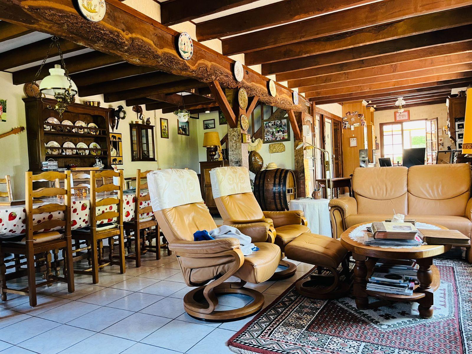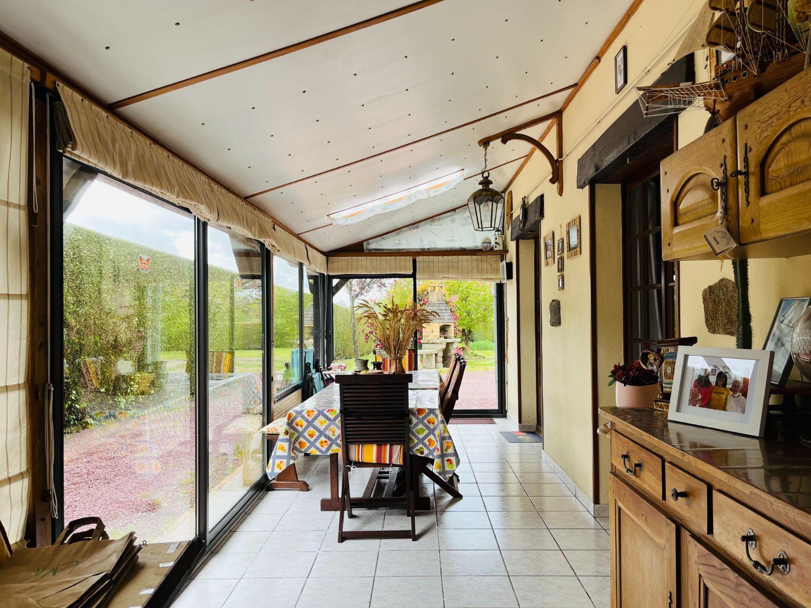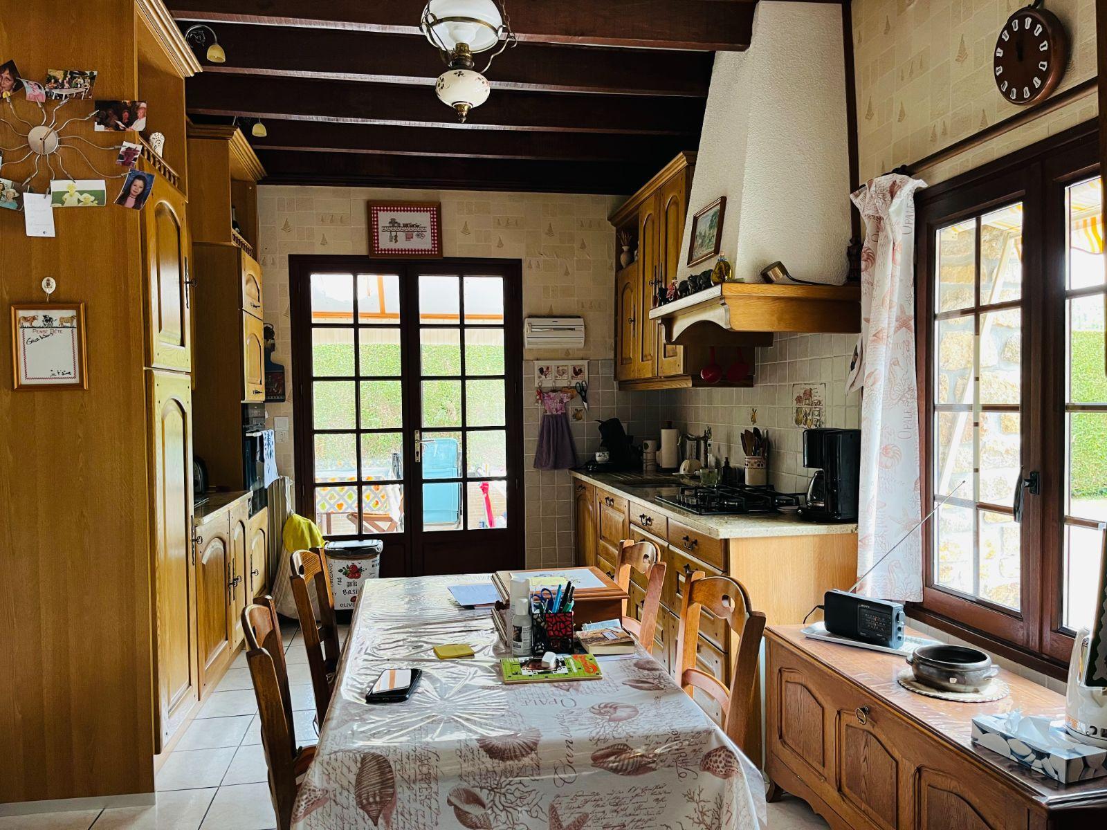 - au rez-de-chaussée : cuisine aménagée et équipée, séjour-salon avec cheminée ouverte, véranda, chambre, bureau, salle d'eau, wc et buanderie ;
