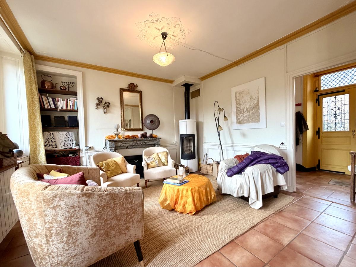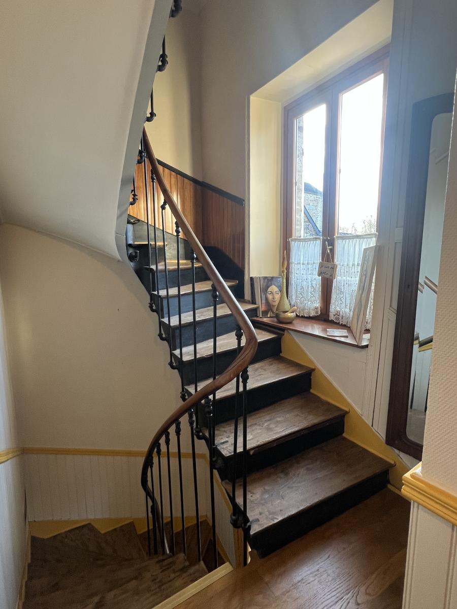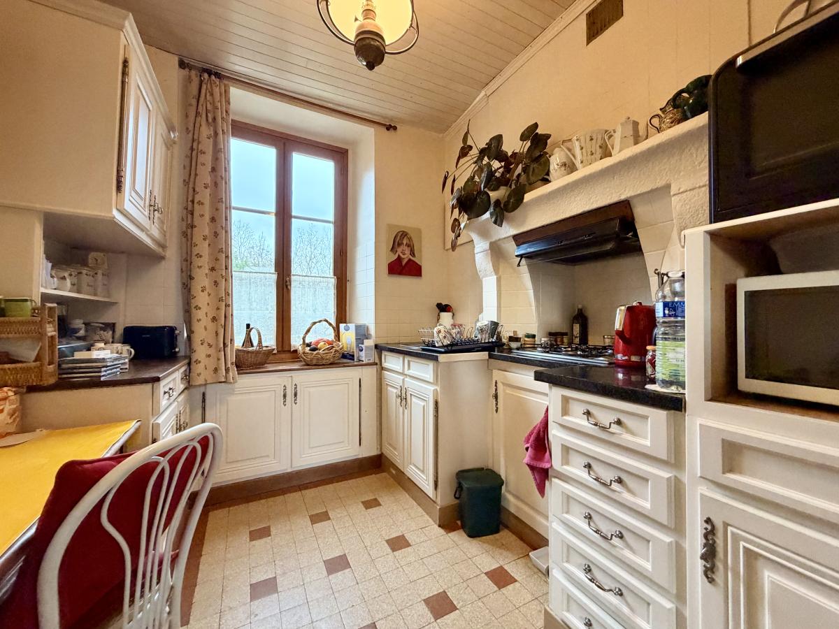 Maison ancienne en pierre pleine de charme comprenant entrée, séjour-salon avec poêle à bois, cuisine. Au 1er étage, palier, salle d'eau, wc, deux chambres. Au deuxième étage, trois pièces à aménager permettant de créer deux chambres et une salle d'eau.