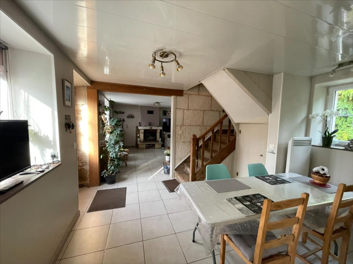 NOUVEAU Chez 'des Notaires à Mes Côtés' à FALAISE dans un environnement de CAMPAGNE, Un Maison ancienne individuelle bien entretenue d'une surface d'environ 85 m², composée d'une pièce de vie avec cheminée insert, coin repas et cuisine aménagée.Au 1er étage : 2 Chambres, salle d'eau et wc.Au 2ème étage Mansardé : pièce palière et 2 petites chambres d'appoints.Cave dans l'enrochement naturelle, et buanderie. Nombreuses dépendances dont un bâtiment d'environ 90m² au sol, appentis, remise ..Terrain arboré 3831m².