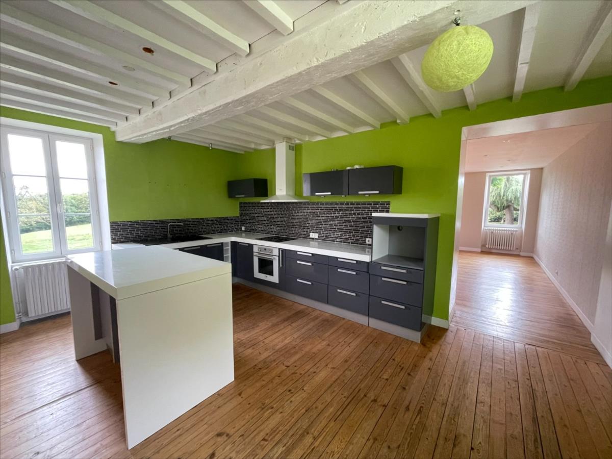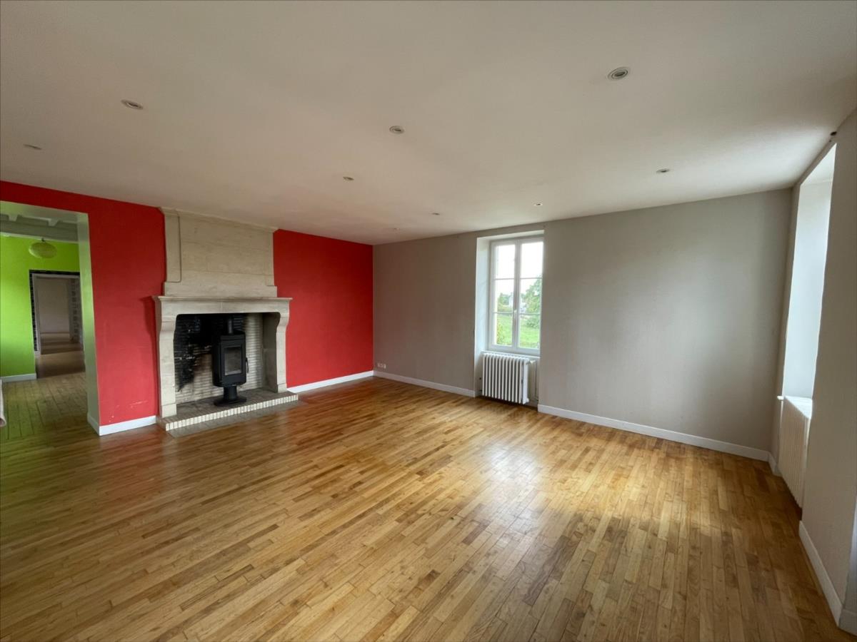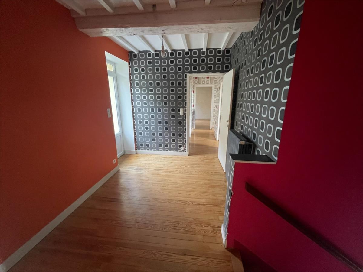 A l 'étage : pièce palière desservant d'un côté la cuisine aménagée équipée coin repas (env 22m²) et un séjour avec poêle à bois (env 31 m²) accès terrasse et jardin. Un dégagement avec accès jardin desservant 3 chambres, salle de bain, wc.