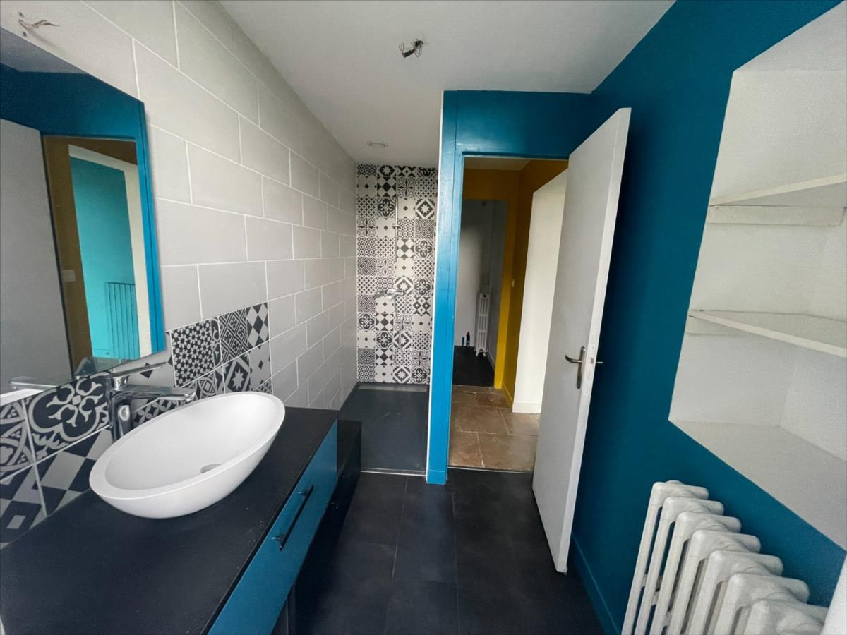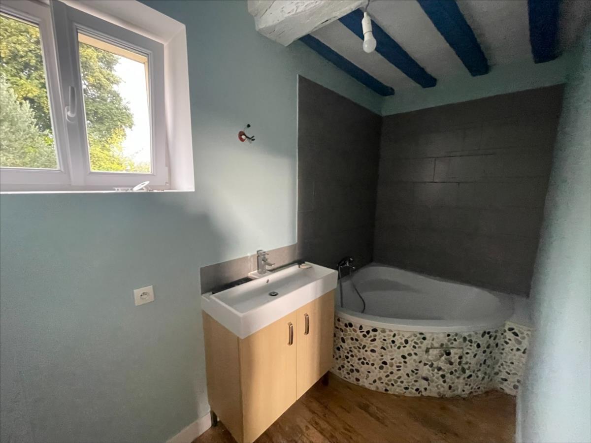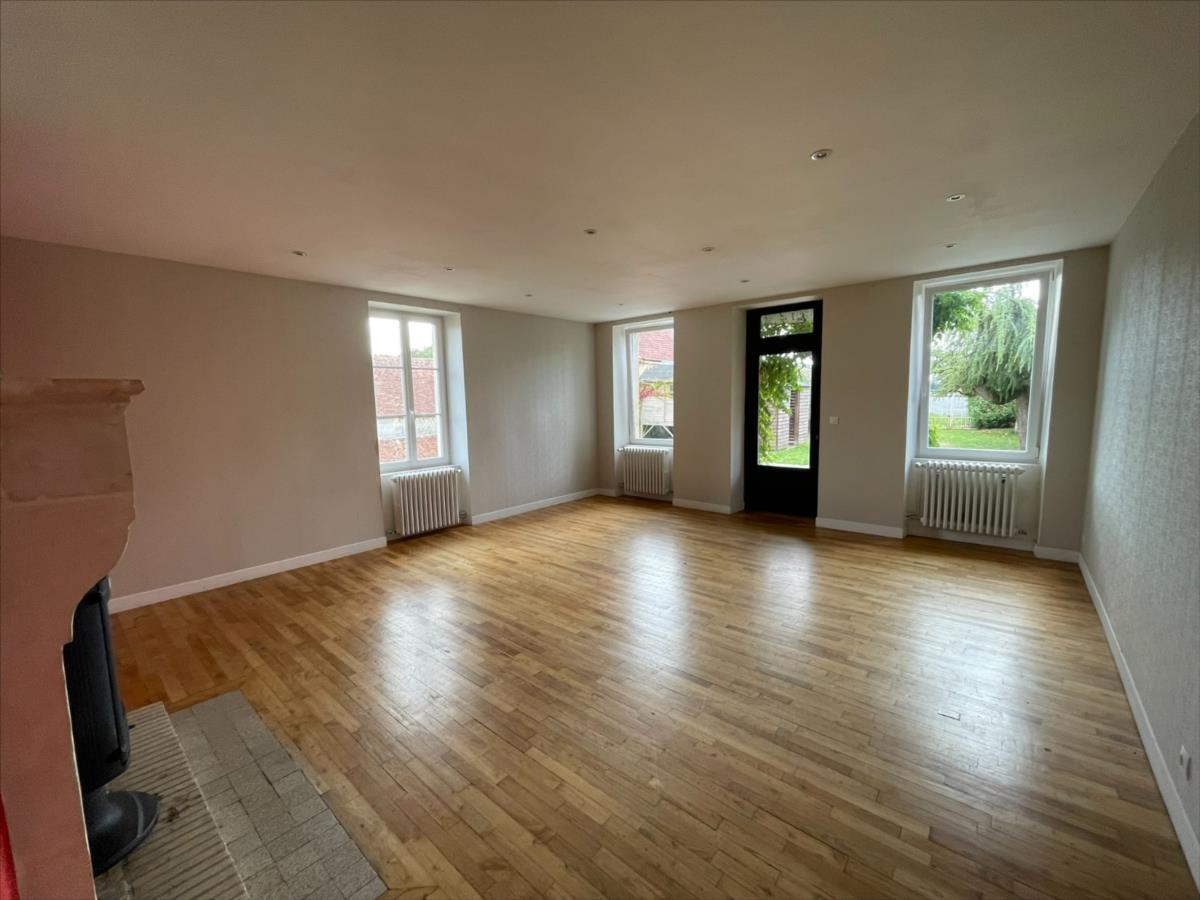 A l 'étage : pièce palière desservant d'un côté la cuisine aménagée équipée coin repas (env 22m²) et un séjour avec poêle à bois (env 31 m²) accès terrasse et jardin. Un dégagement avec accès jardin desservant 3 chambres, salle de bain, wc.