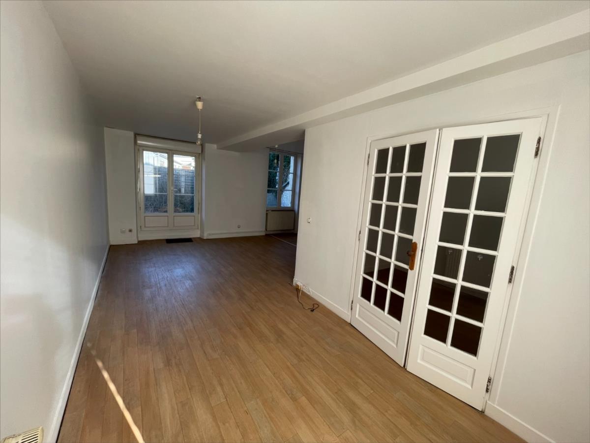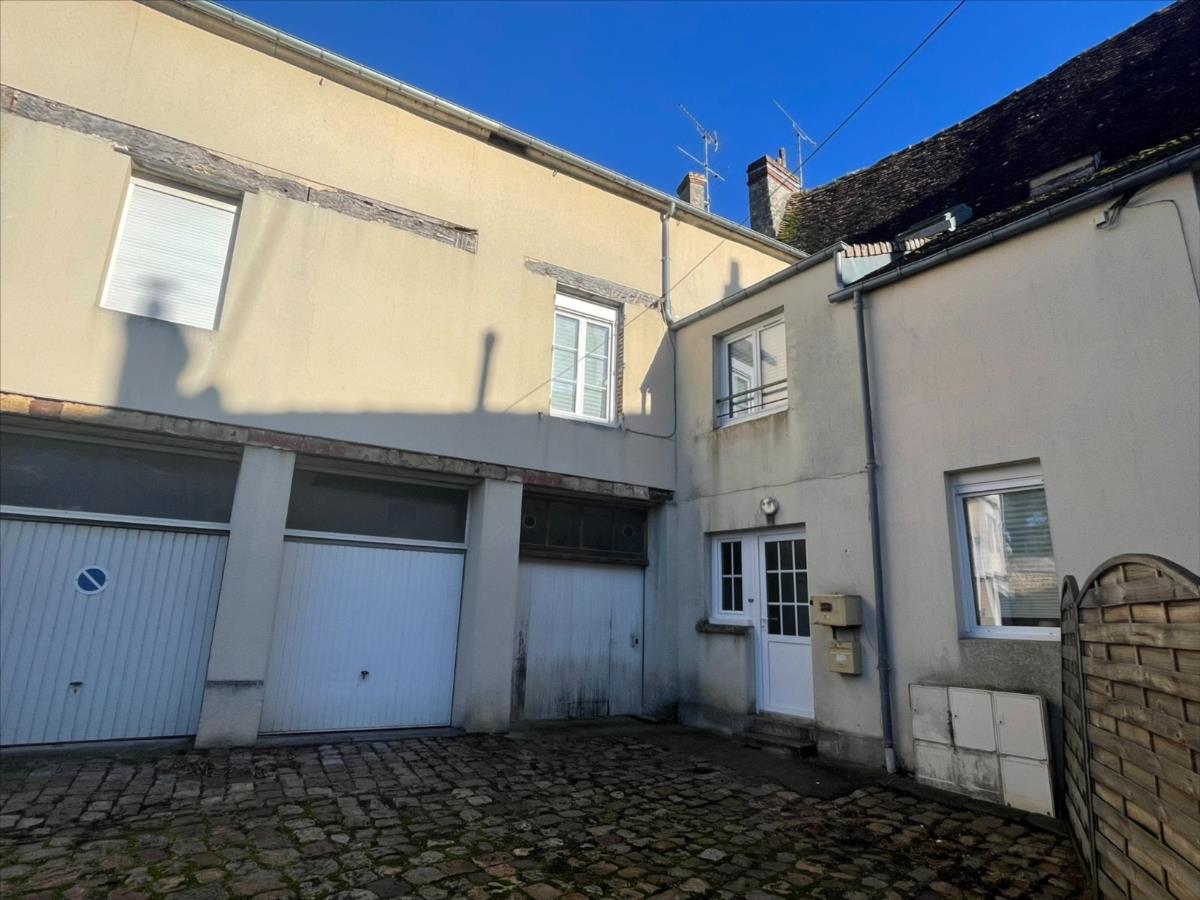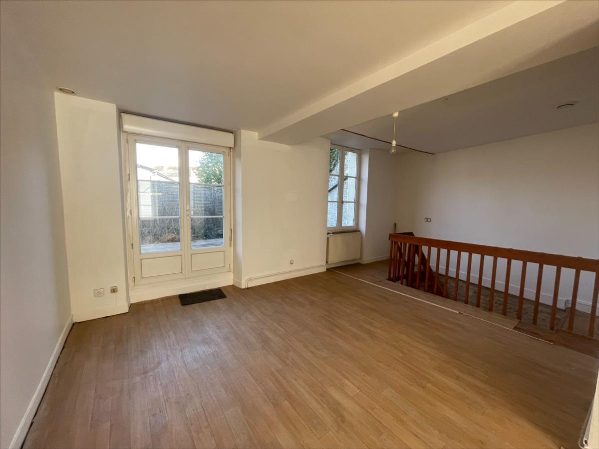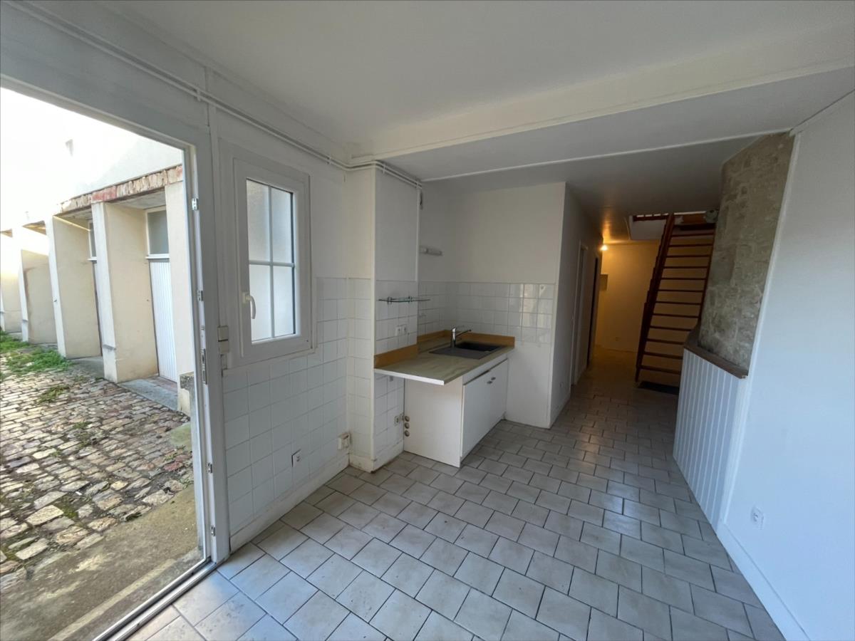 NOUVEAU 'Chez des Notaires à mes Côtés'Maison de ville duplex de type F2, surface en 59 m².Composée au rez-de-chaussée : Kitchenette, salle d 'eau et wc, dégagement accès GARAGE et Cave.Etage : pièce de vie et Coin Nuit. Grenier sur l 'ensembleTerrasse.