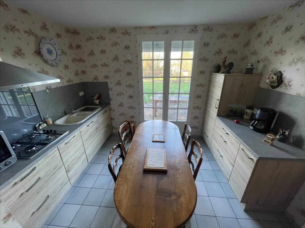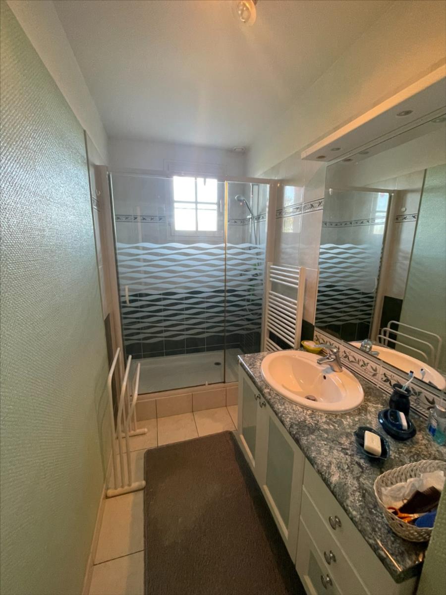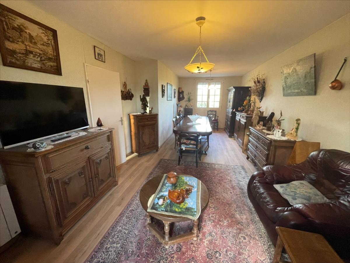 composée entrée avec rangement, séjour (env 25 m²), cuisine aménagée, dégagement desservant 3 chambres, salle d'eau , wc.
