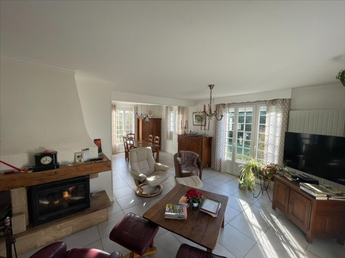 NOUVEAU 'Chez des Notaires à Mes Côtés' AUX PORTES DE FALAISE.Au calme et environnement verdoyant.Une maison individuelle d'une surface d'environ 127m².composée d'une pèce de vie ouverte sur une cuisine aménagée (env 48m²), deux chambres, salle d'eau et wc.A l 'étage : pièce palière /bureau, une grande chambre avec coin dressing ( env 19m²).Grenier aménageable : possible 4ème chambre (env 19m²).Sous-sol complet. Jardin arboré 4 414 m².Bâtiment annexe (env 38m²).