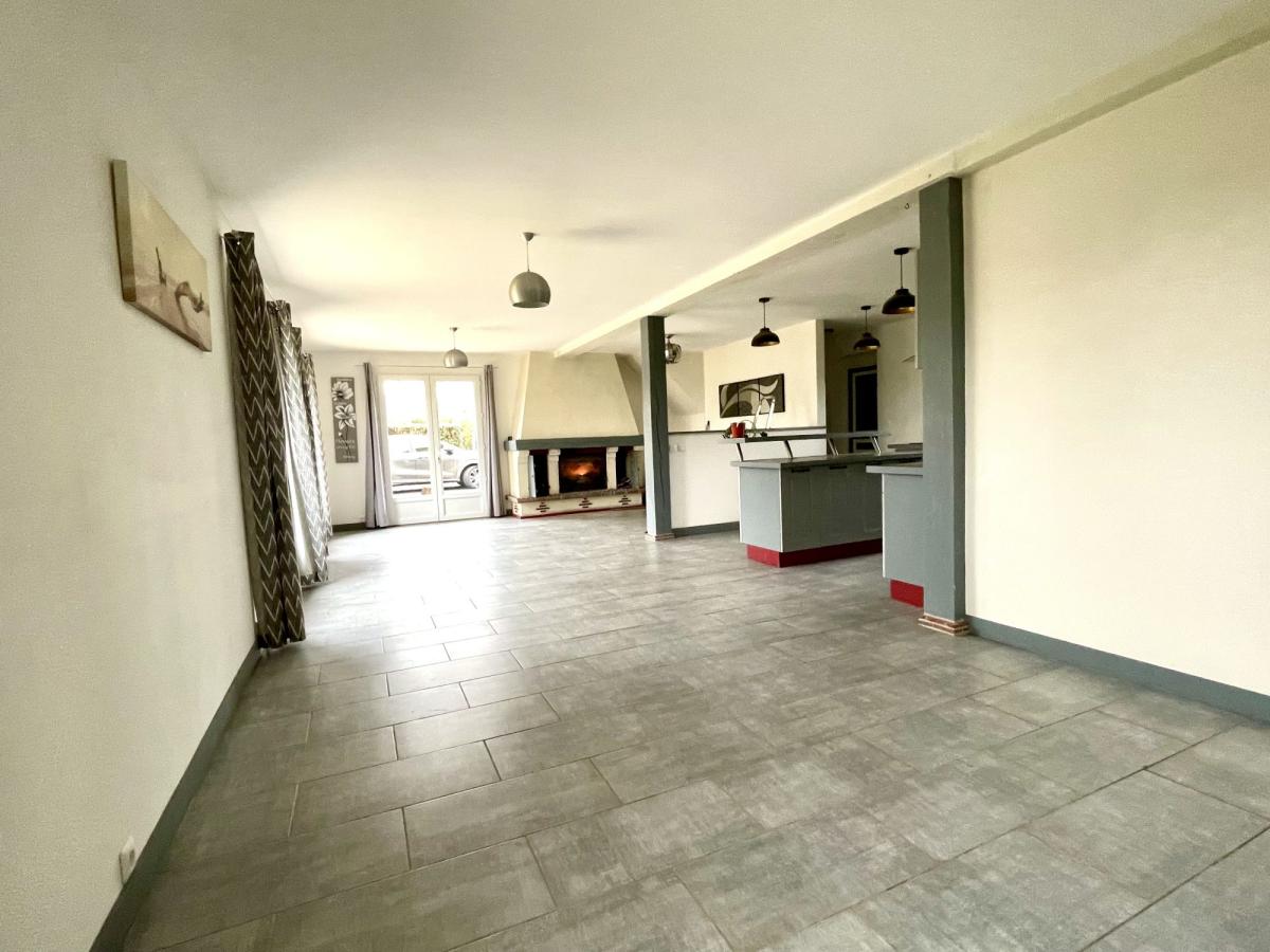 Elle se compose au rez-de-chaussée d'un beau séjour de 45 m² très lumineux , avec cheminée/insert ( et bouches de chaleur dans les chambres), cuisine ouverte aménagée et équipée , arrière cuisine , entrée de service , deux chambres , une salle d'eau et wc .