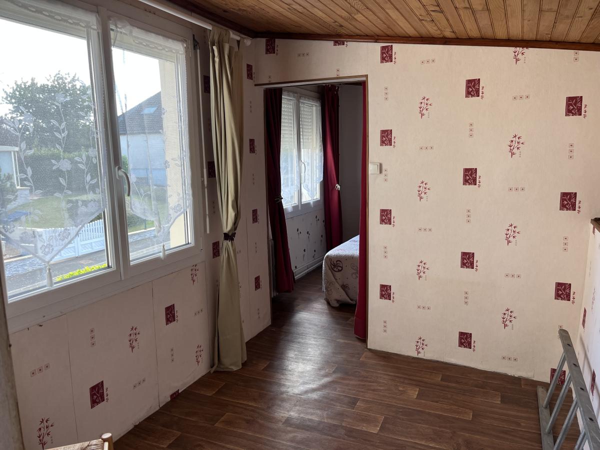 15 minutes Caen Centre, sur 300m² de terrain, maison ancienne comprenant : salle à manger avec cheminée, cuisine, salle d'eau ,wc. A l'étage : une grande pièce palière pouvant faire office de couchage, deux chambres dont une avec coin bureau.