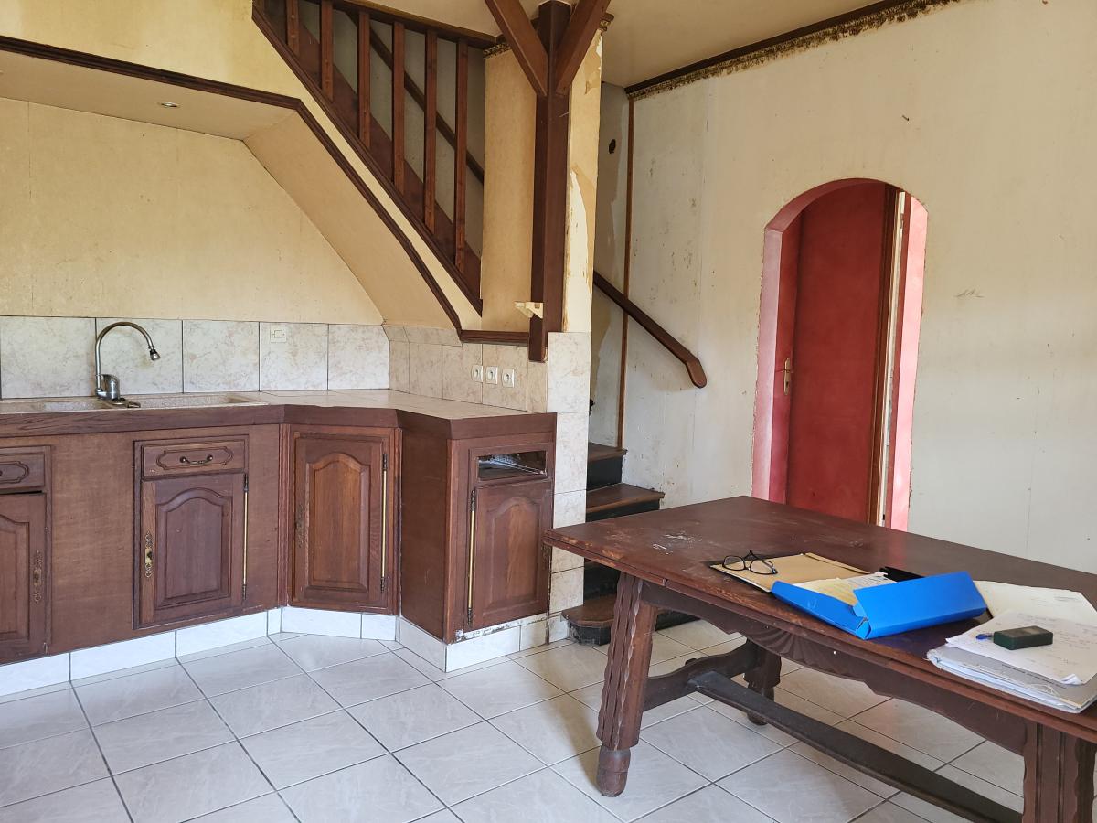BARON SUR ODON : Maison ancienne à rénover entièrement comprenant : Rez-de-chaussée : cuisine, séjour-salon avec cheminée-insert, salle de bains,wc A l'étage : trois chambres, wc Garage ouvert attenant Tout à l'égout Terrain de 1200 m² environ