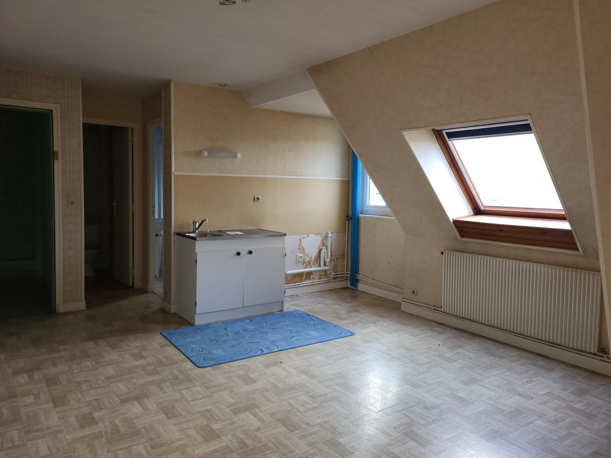 Logement comprenant une pièce de vie, deux chambres, cuisine, salle d'eau, wc