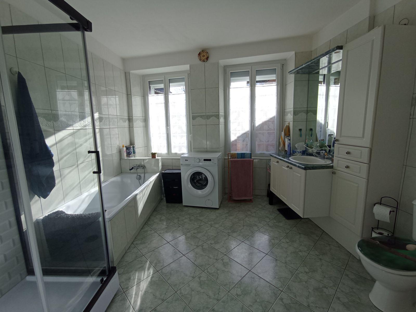 -Au premier étage: un palier dessert une chambre, dégagement, une salle de bains avec wc