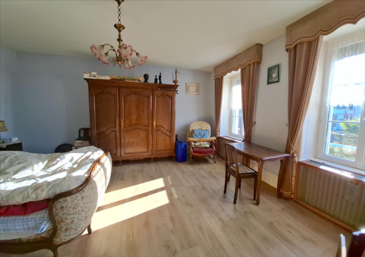 En exclusivité : Proche du centre ville, avec jardin et garage, maison d'habitation, comprenant :. Au rez-de-chaussée : entrée, chaufferie, cuisine, salle d'eau avec WC, séjour - salon, salle à manger.. A l'étage : palier desservant une grande chambre, dressing, une chambre donnant dans une autre pièce à usage de chambre, salle d'eau avec WC.. Au-dessus : grenier à usage de chambre et grenier.Jardin sur l'avant exposé sud-Ouest.Bâtiment à usage de garage-cellier-atelier.Le tout pour une surface de 560m².