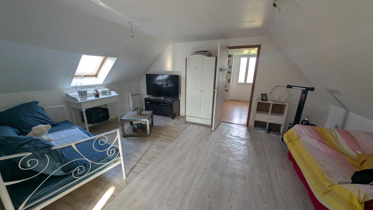 Au 1er étage : mezzanine, deux chambres, placard.