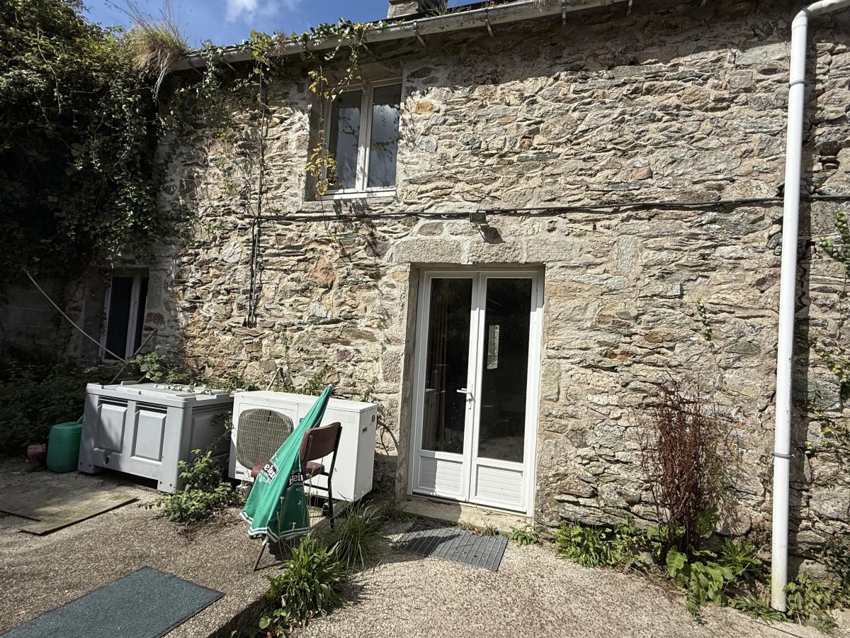 Cour sur l'arrière avec terrasse.