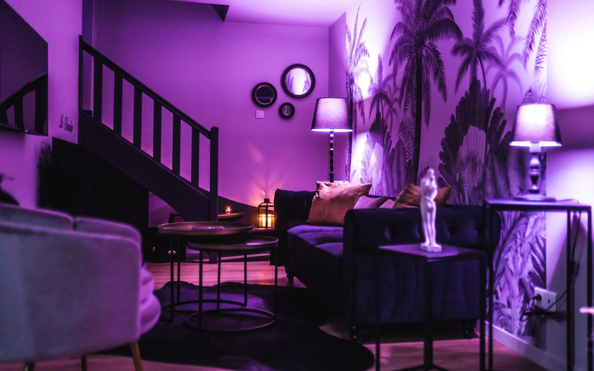 En sous-sol, un espace complémentaire a été aménagé en salle de jeux / espace plaisirs.