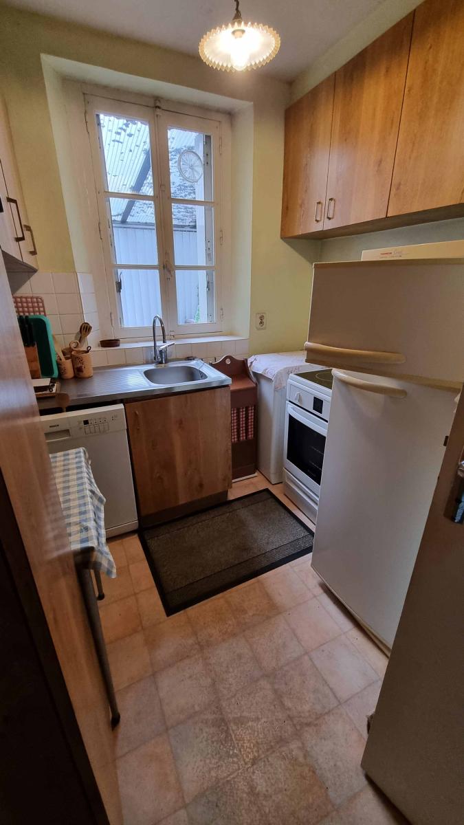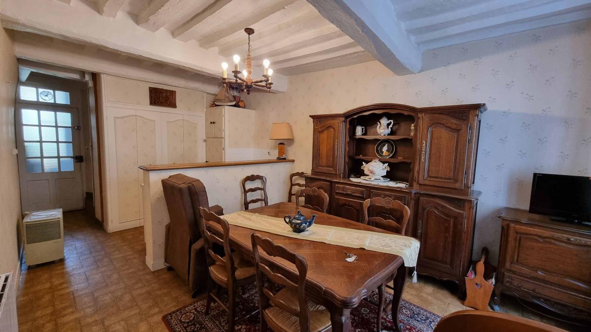 Au rez-de-chaussée : Salle à manger avec coin cuisine, cuisine, WC, petite véranda.