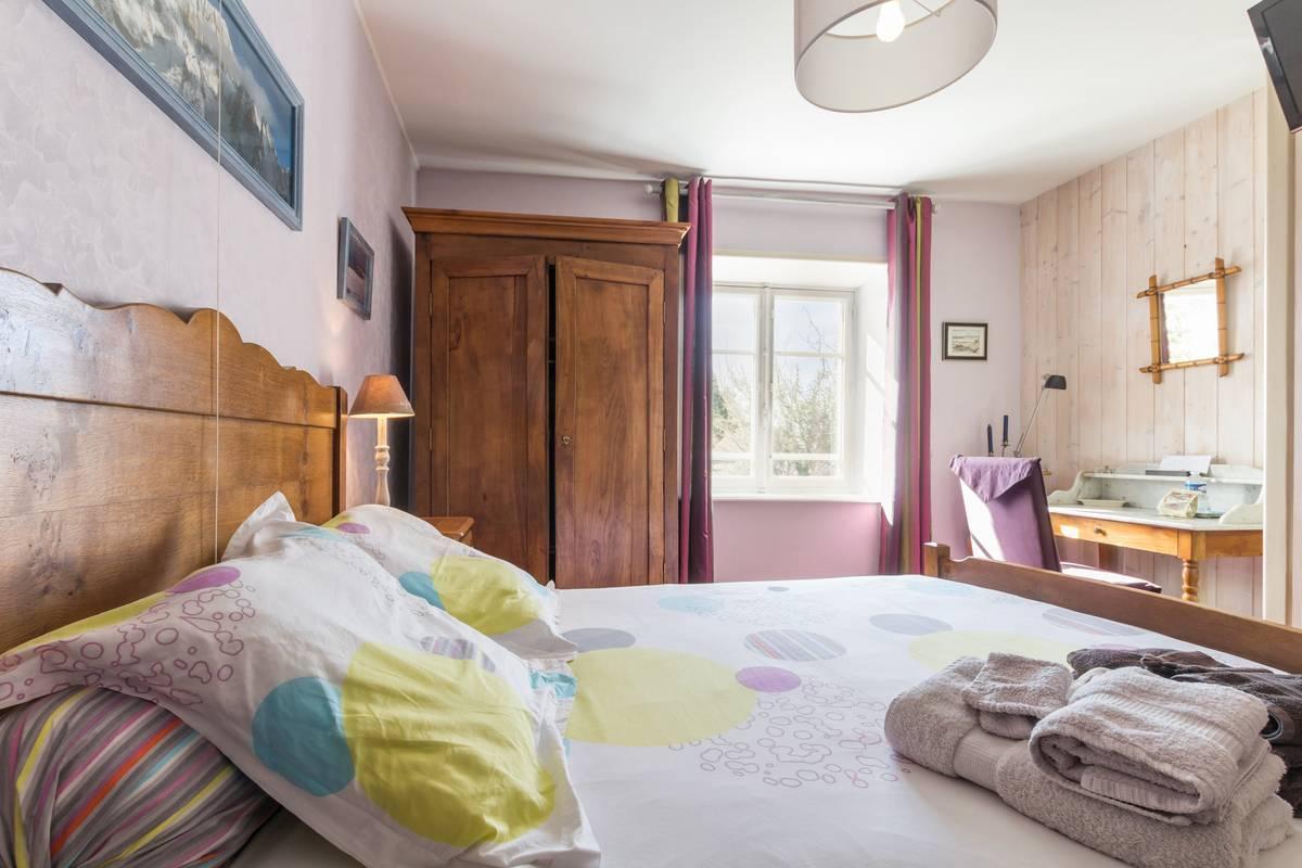 Au rez-de-chaussée : entrée, wc, cuisine aménagée et équipée, salon avec poêle, salle à manger avec cheminée, une chambre, une salle d'eau avec wc.
