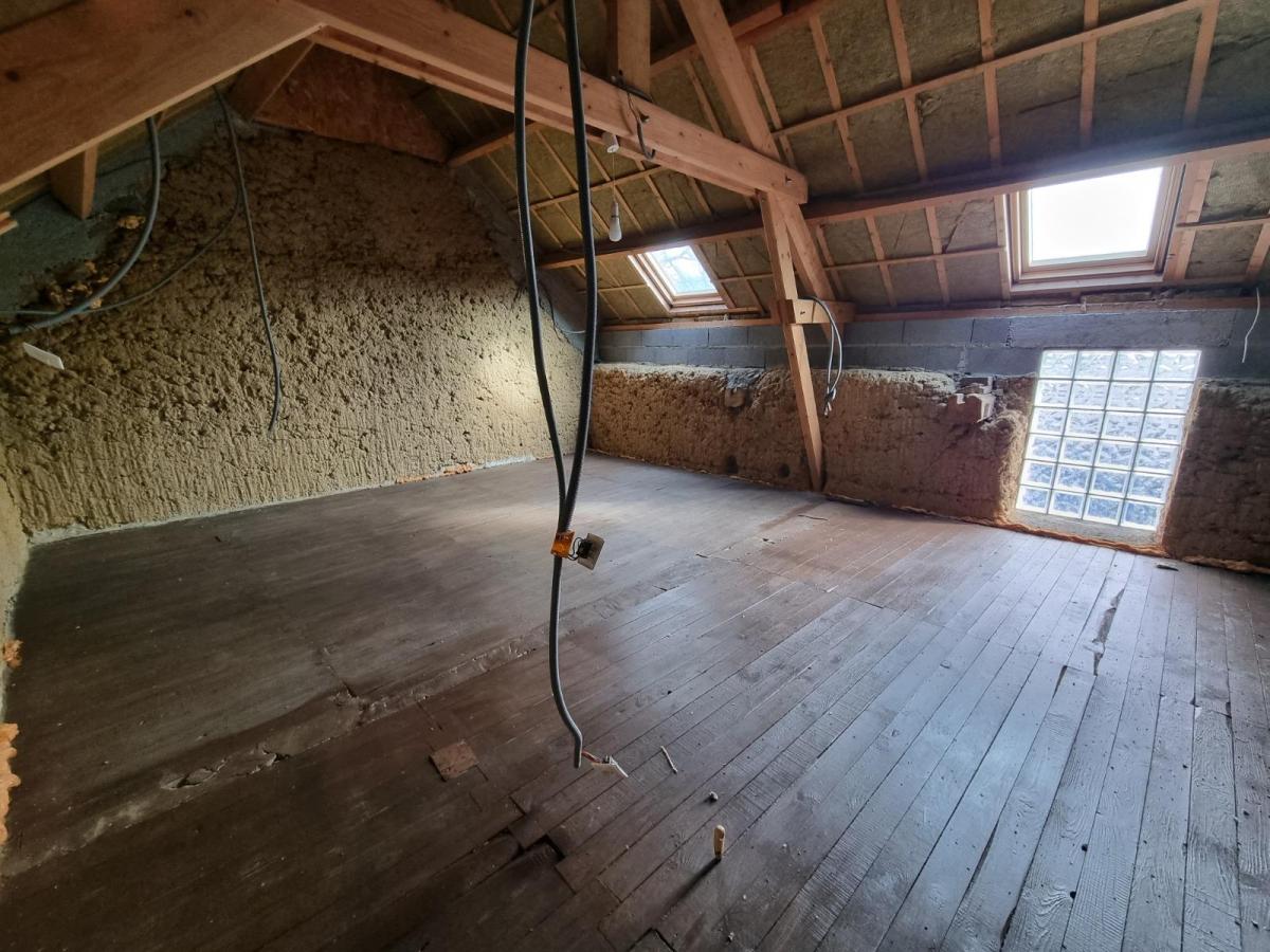 Au rez-de-chaussée : une pièce avec coin cuisine, une pièce avec salle d'eau, wc, une chambre, une pièce avec une chaudière.