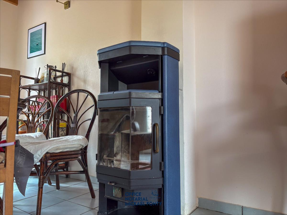 cheminée et poêle à bois, une véranda et trois chambres.