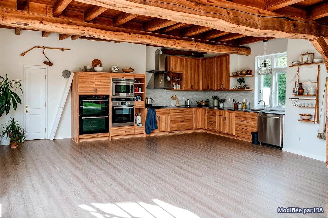 Terrain vers Est, garage en bois et cour gravillonnée derrière sans vis à vis et exposée sud.