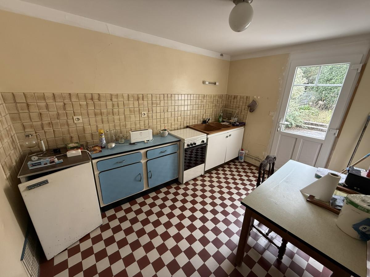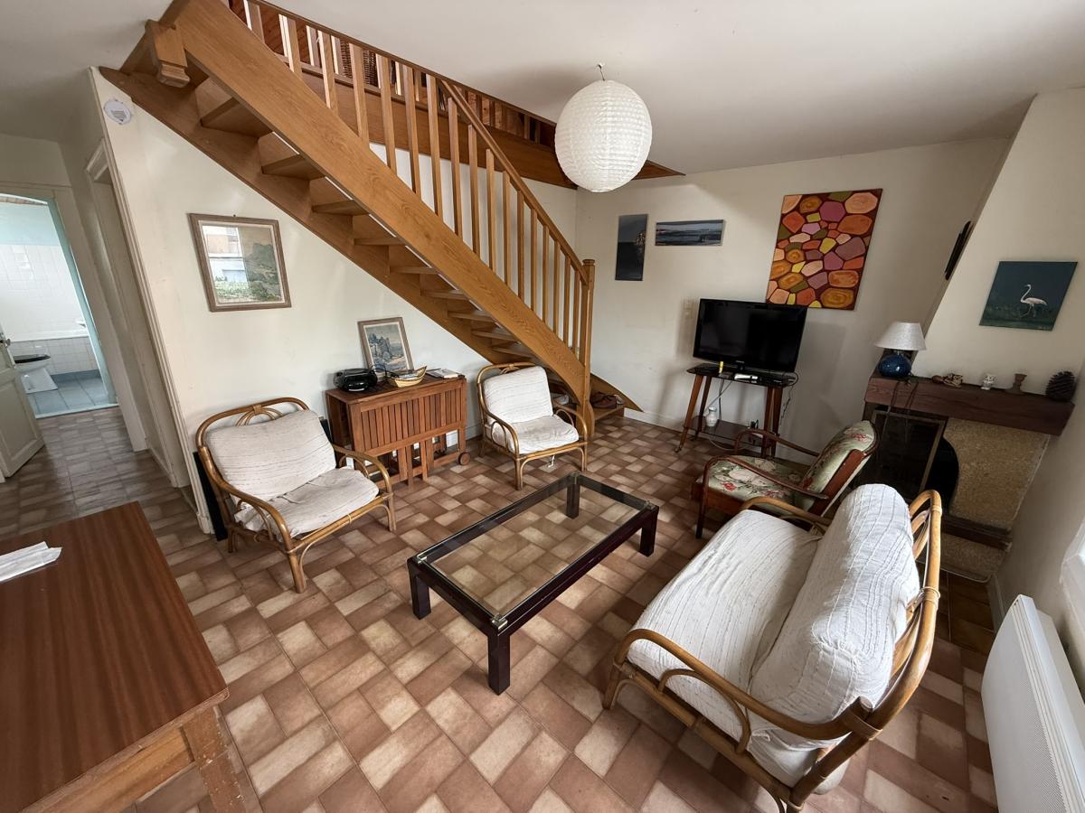 - Au rez de chaussée: séjour avec cheminée, cuisine, deux chambres, salle de bains avec WC.