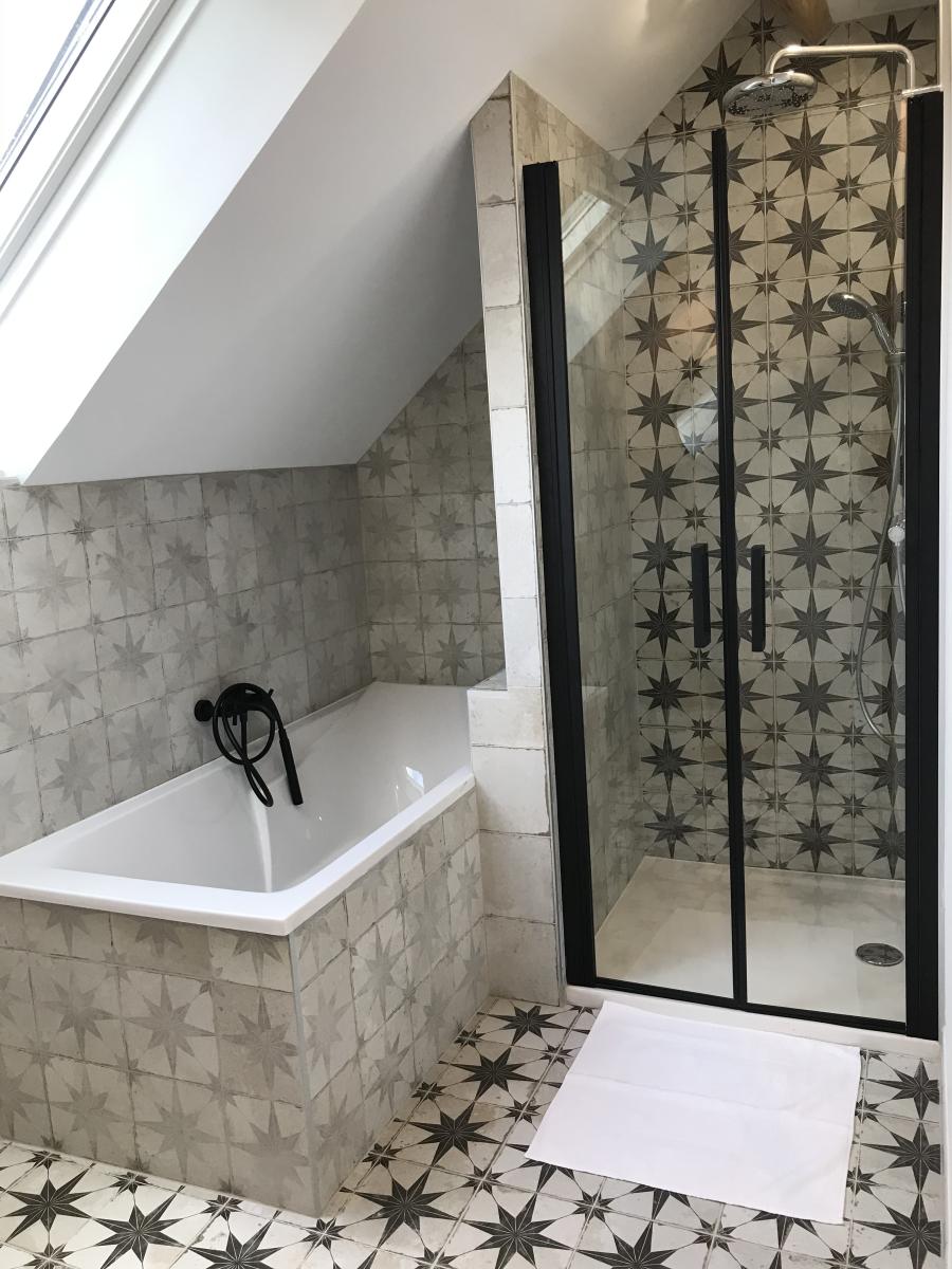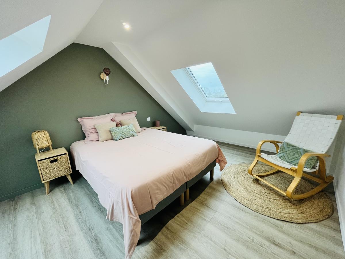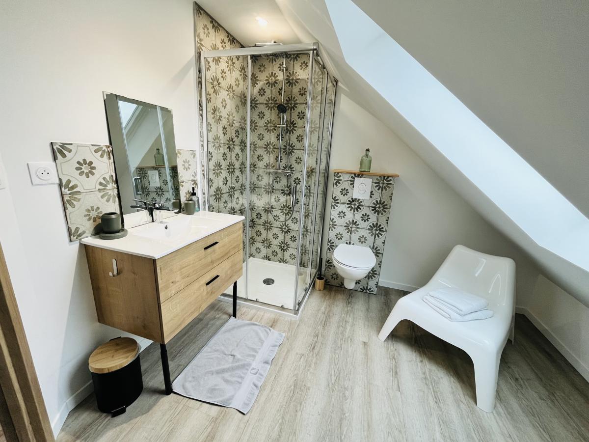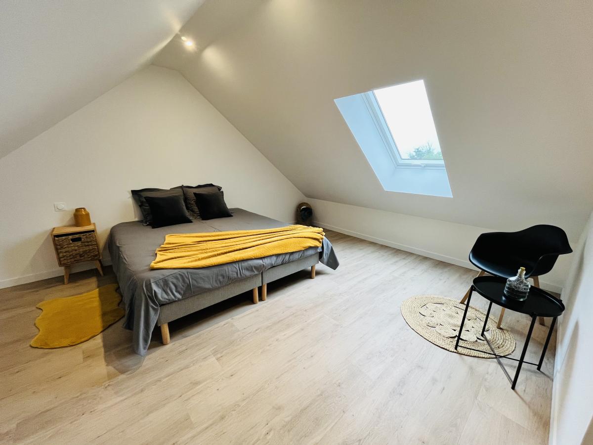 2°) Une seconde maison de 150 m² comprenant: grand séjour avec cuisine ouverte équipée + ilot central et poêle à granulés, dégagement, buanderie, WC. Au premier étage : palier, salle de bains, WC, trois chambres. Au deuxième étage : suite parentale comprenant chambre, espace bureau, salle d’eau avec WC et dressing. Cour devant et jardin derrière avec terrasse.
