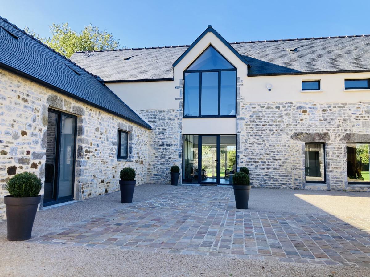 1°) Maison principale de 300 m² comprenant: entrée avec placards, WC avec lave-mains, vaste séjour avec cuisine ouverte équipée avec ilot, espace détente avec SPA + sauna + salle d’eau avec WC , chaufferie/buanderie, autre cuisine équipée, une chambre avec salle d’eau et WC privatifs. A l’étage : salon en mezzanine, 5 chambres dont deux avec salle d’eau/WC privatifs et deux avec salle d’eau/ WC + baignoire privatifs. Cour devant avec deux garages/atelier + grenier, salle de sport à la suite. jardin derrière avec grande terrasse.