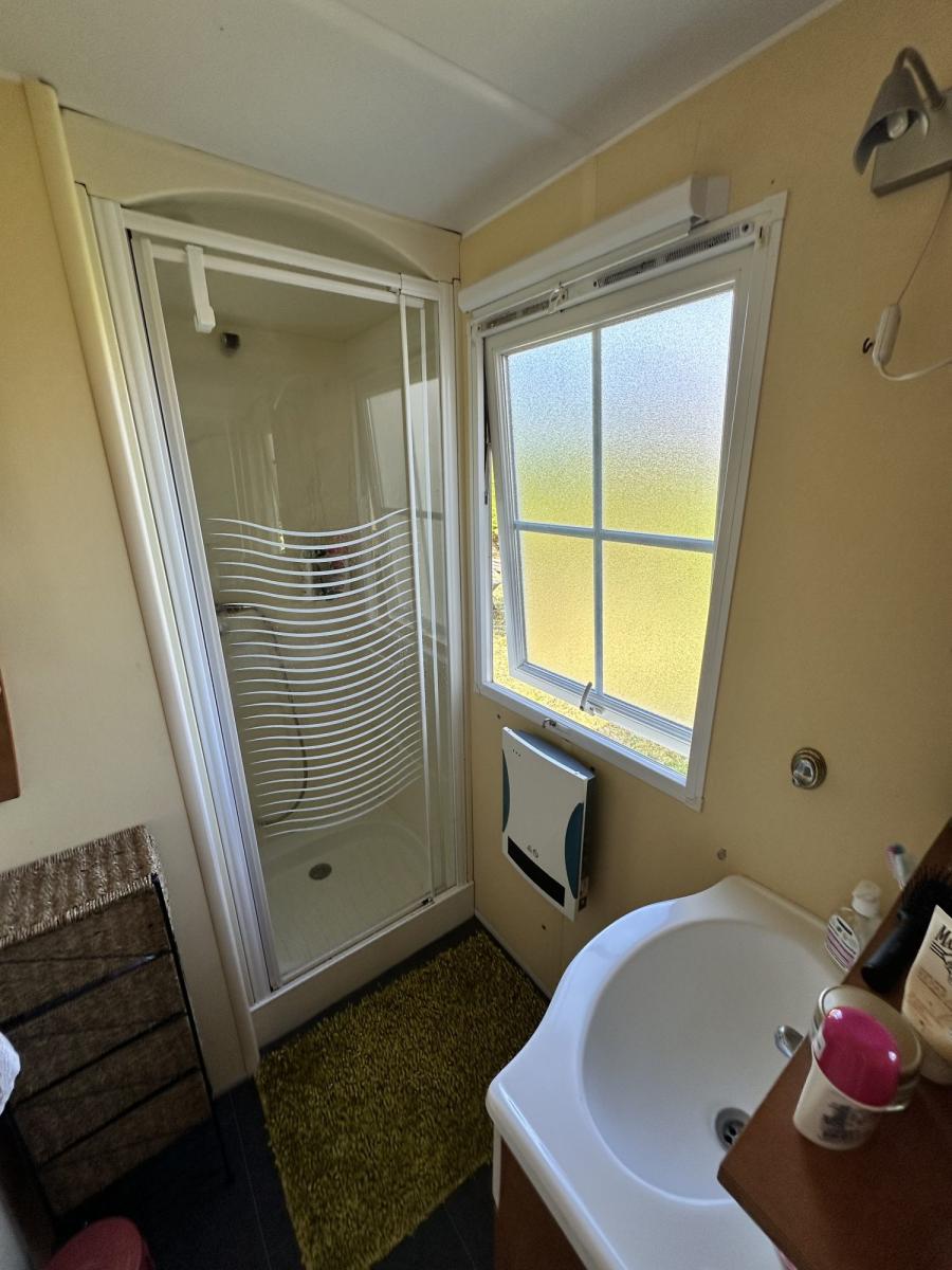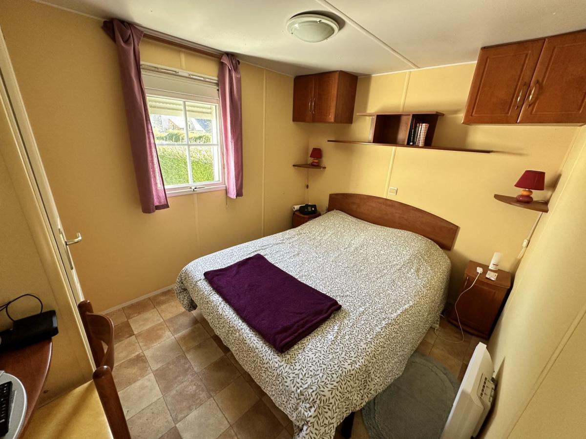 - Mobilhome comprenant séjour avec cuisine ouverte équipée, deux chambres, salle d'eau, WC.