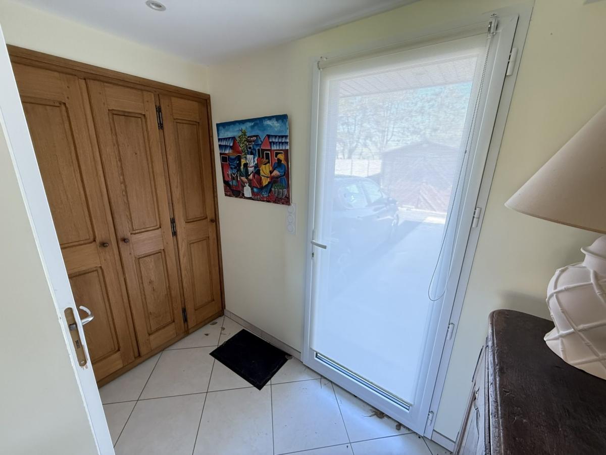 - Au rez de chaussée: entrée avec placard, grand séjour avec cheminée-insert et cuisine ouverte équipée avec ilot, une chambre avec placards, salle d'eau avec douche à l'italienne, WC avec lave-mains, grande arrière-cuisine/buanderie.