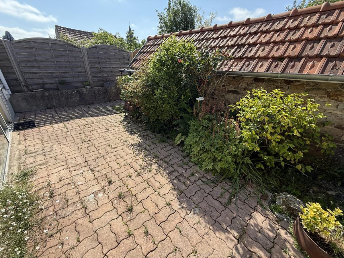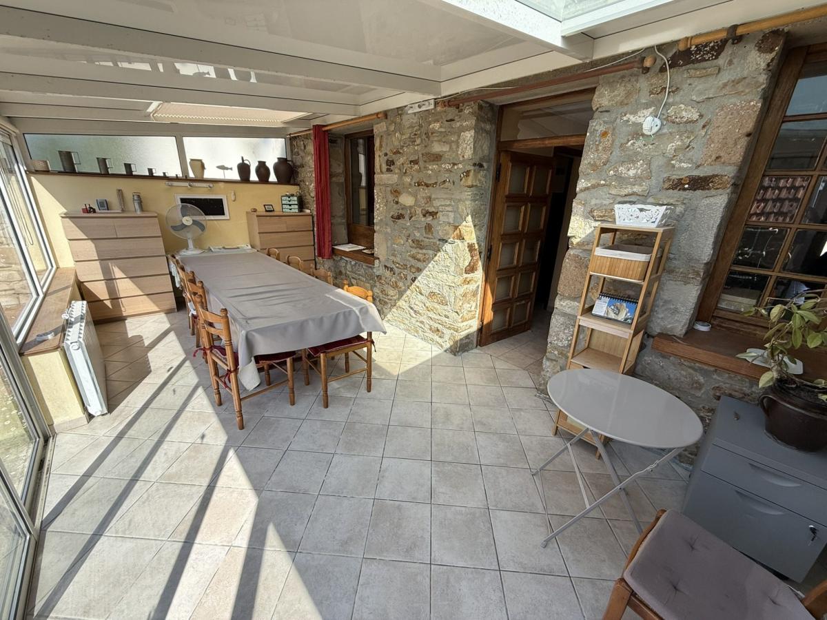 Terrasse derrière, dépendance en pierres à usage de cellier et jardin à la suite avec possibilité de créer un accès véhicules.