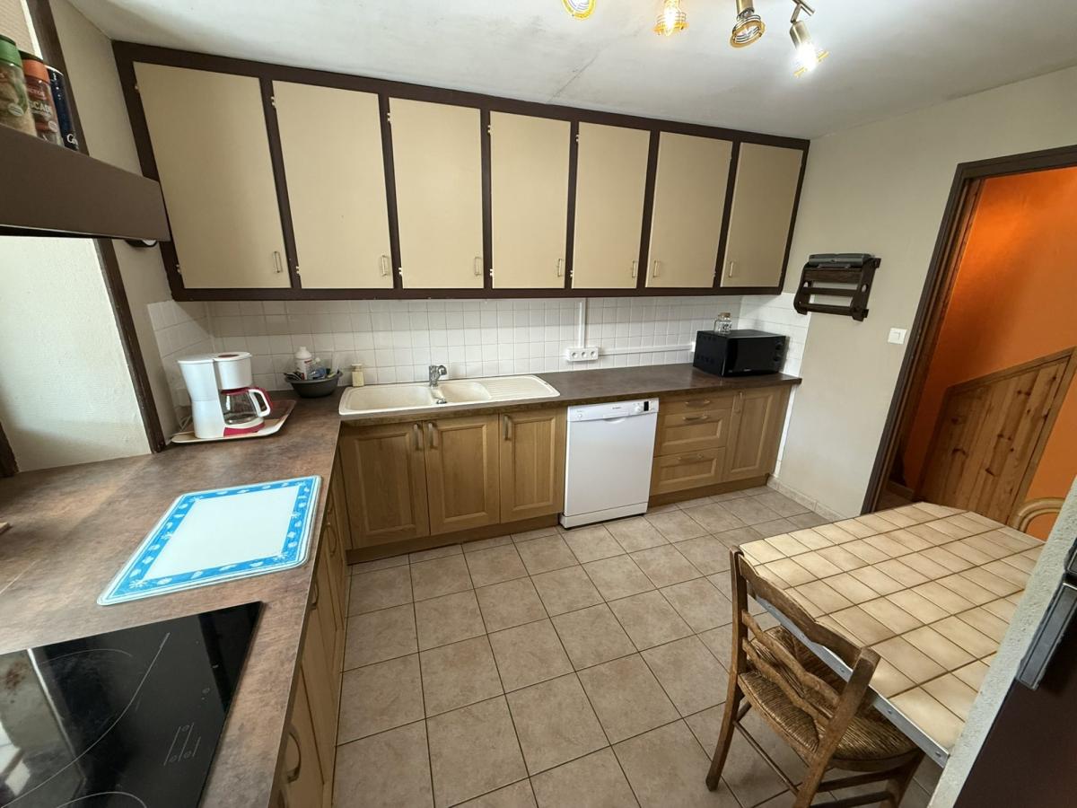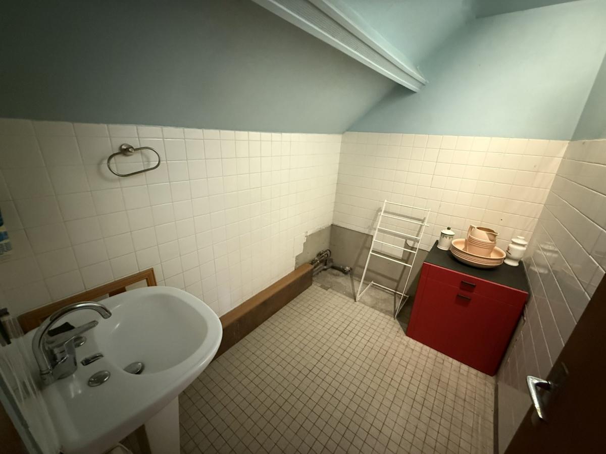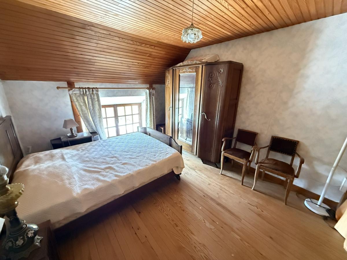 - A l'étage: palier, deux chambres avec placards, WC, ancienne salle de bains.
