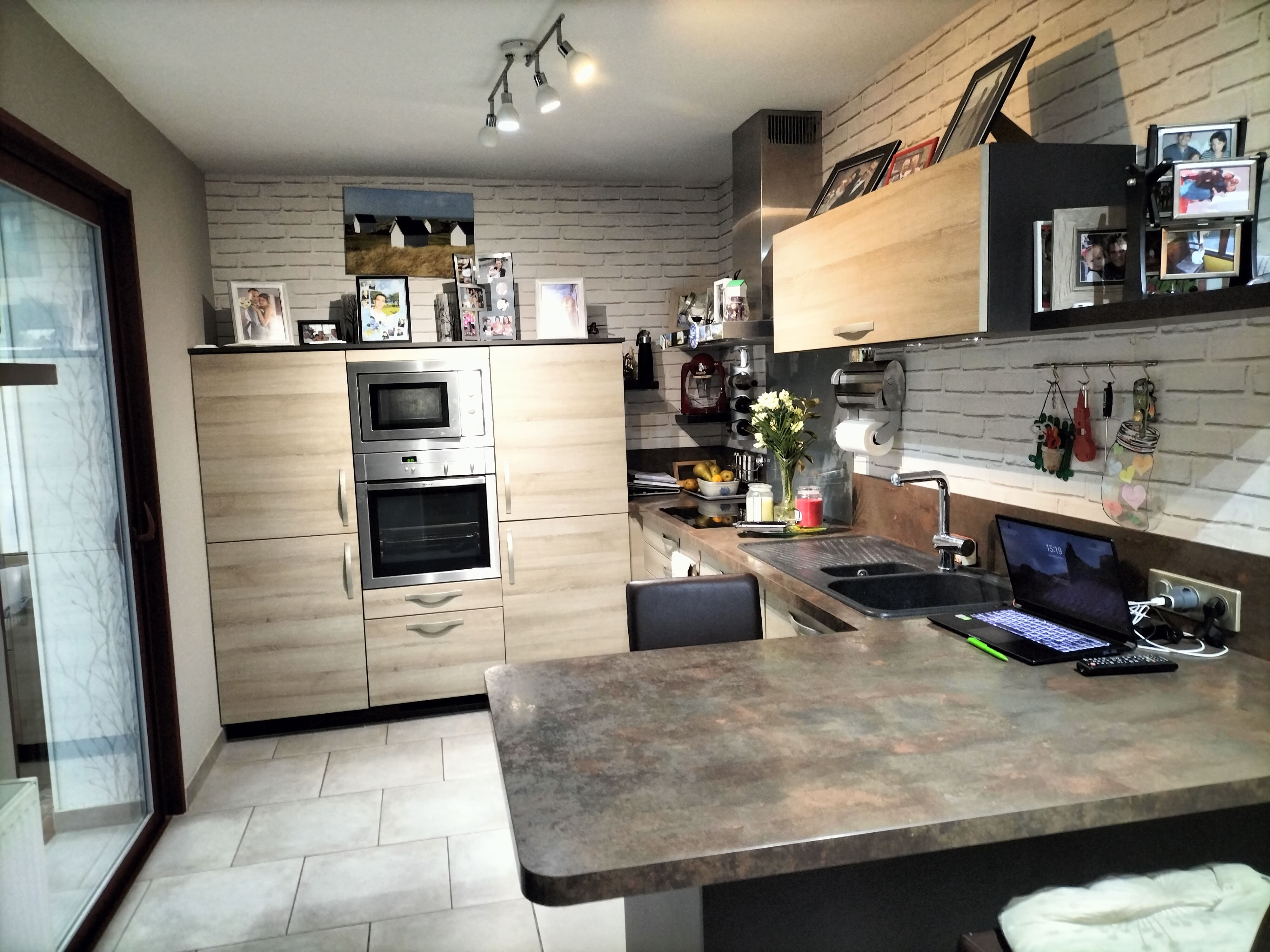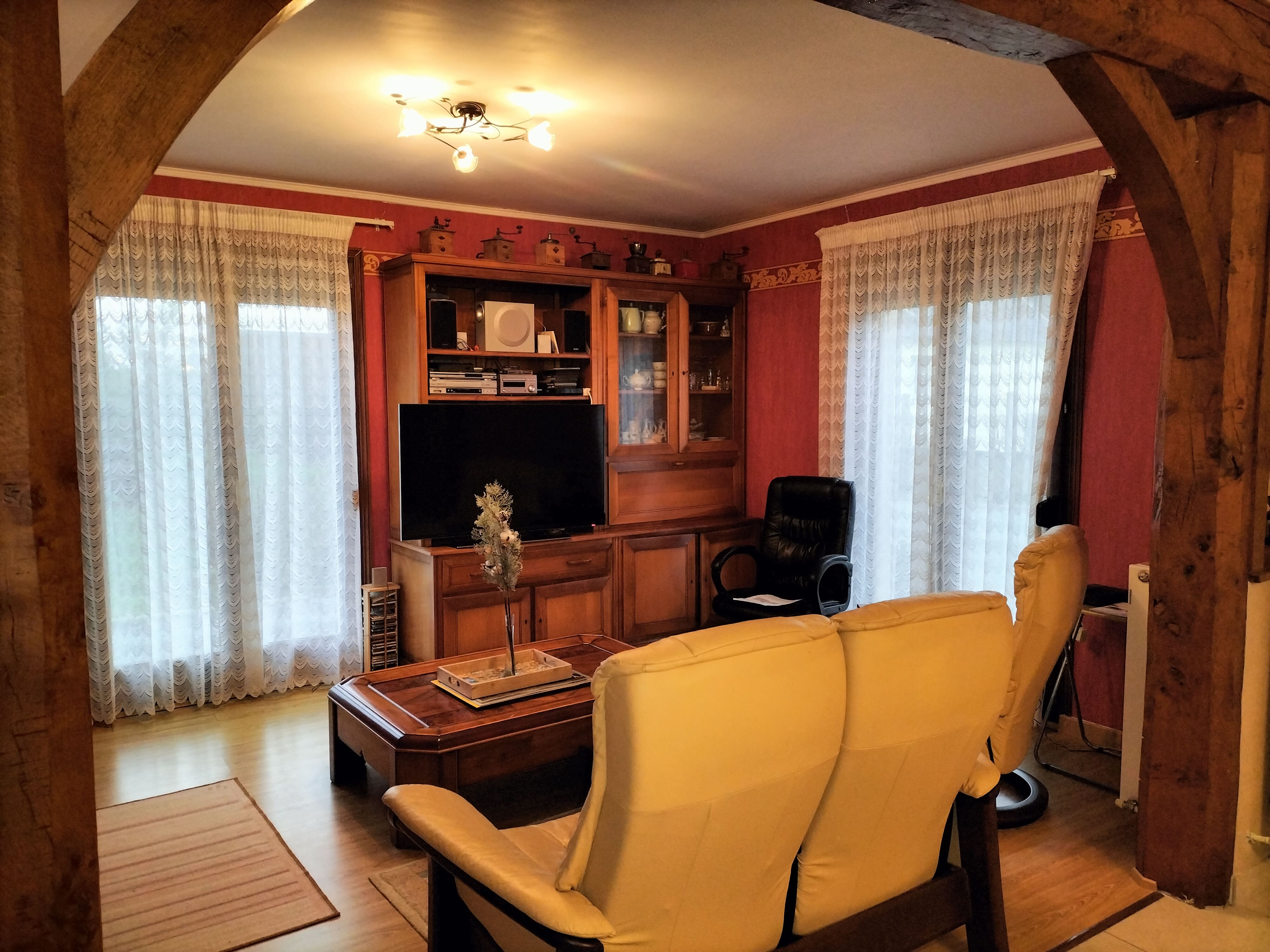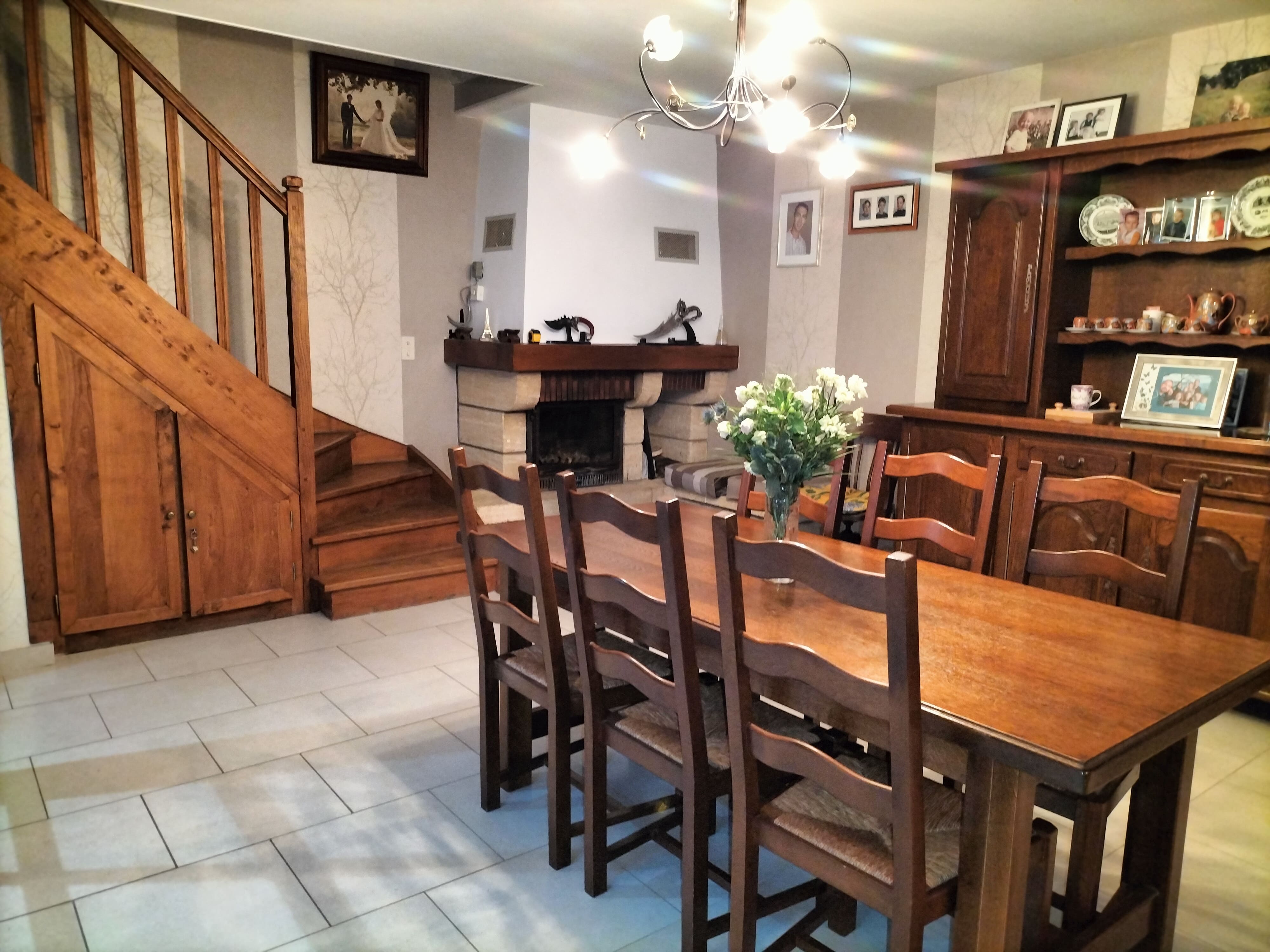 - au rez-de-chaussée : véranda, cuisine aménagée et équipée, dégagement avec placard, séjour/salon avec cheminée(~44 m²), wc indépendant, une chambre (~11,50 m²), arrière-cuisine avec coin douche, chaufferie ;