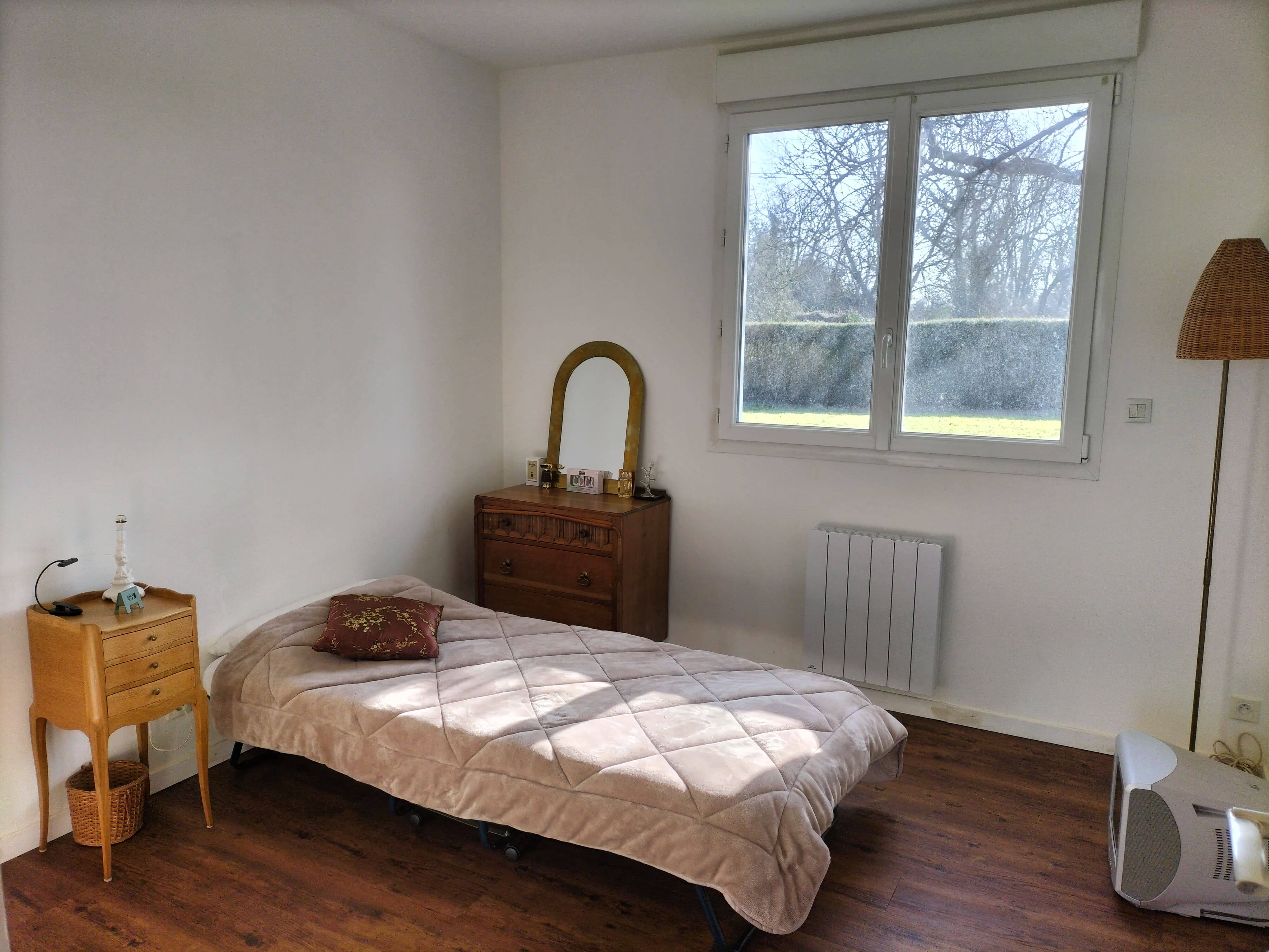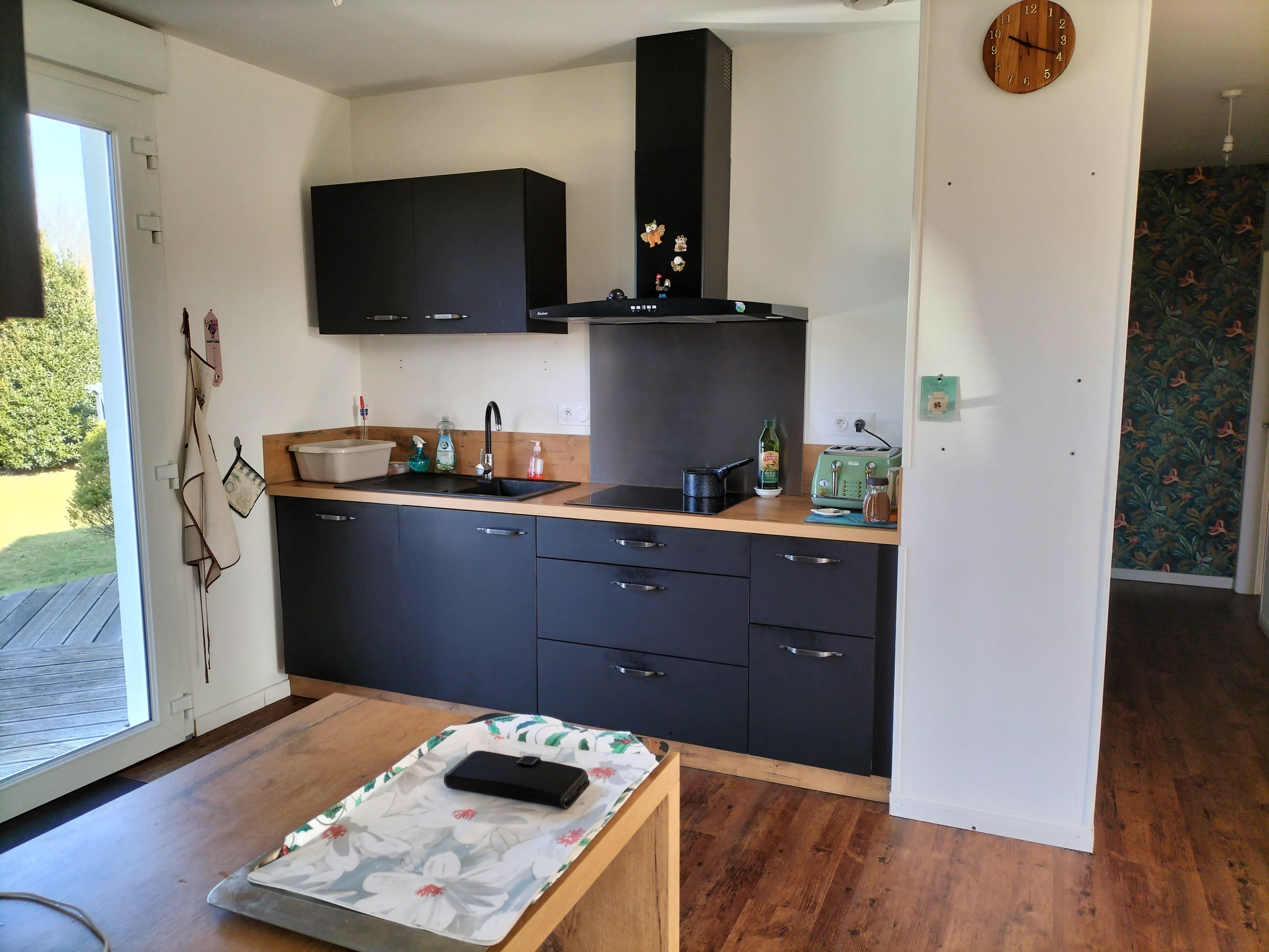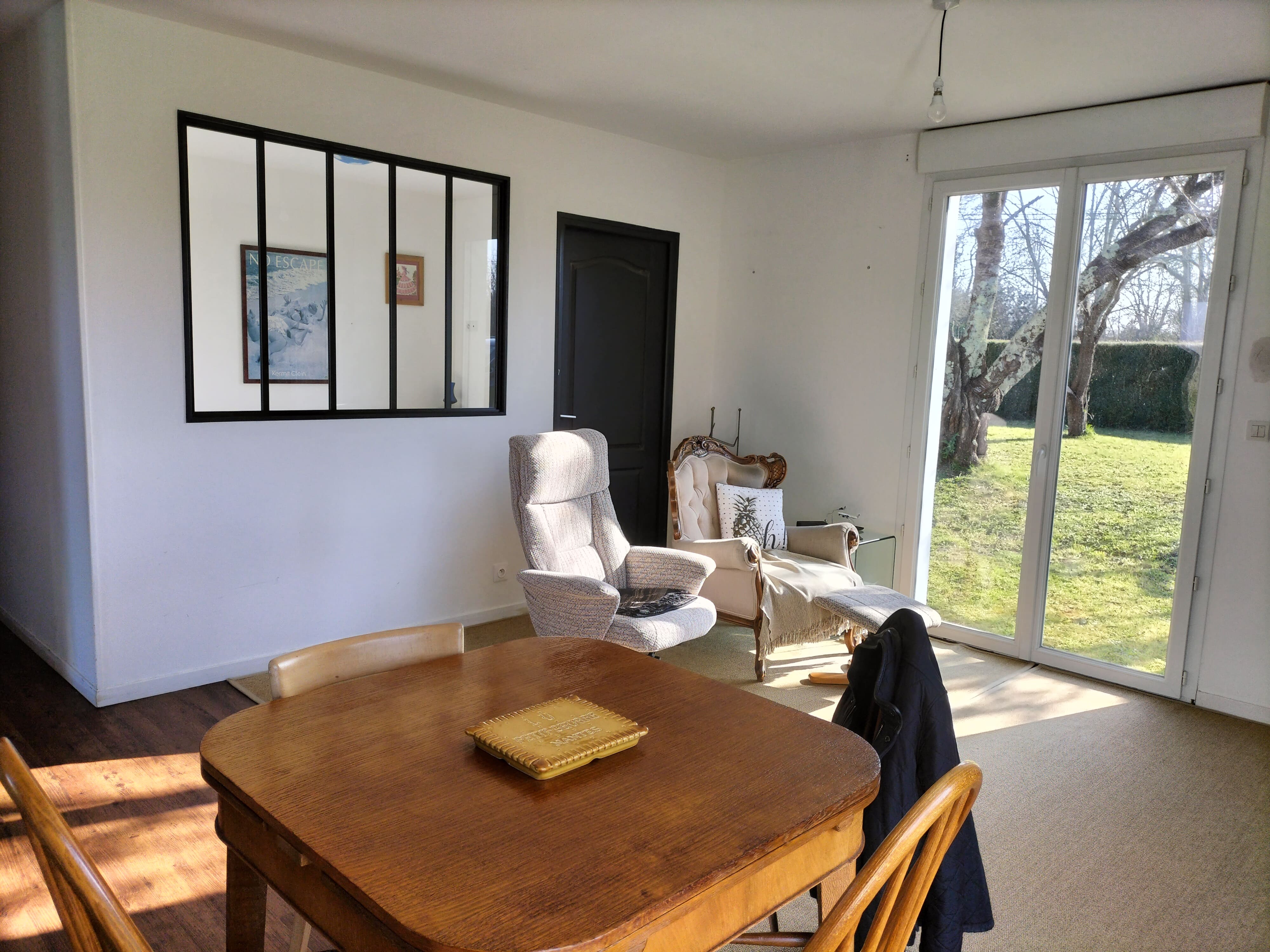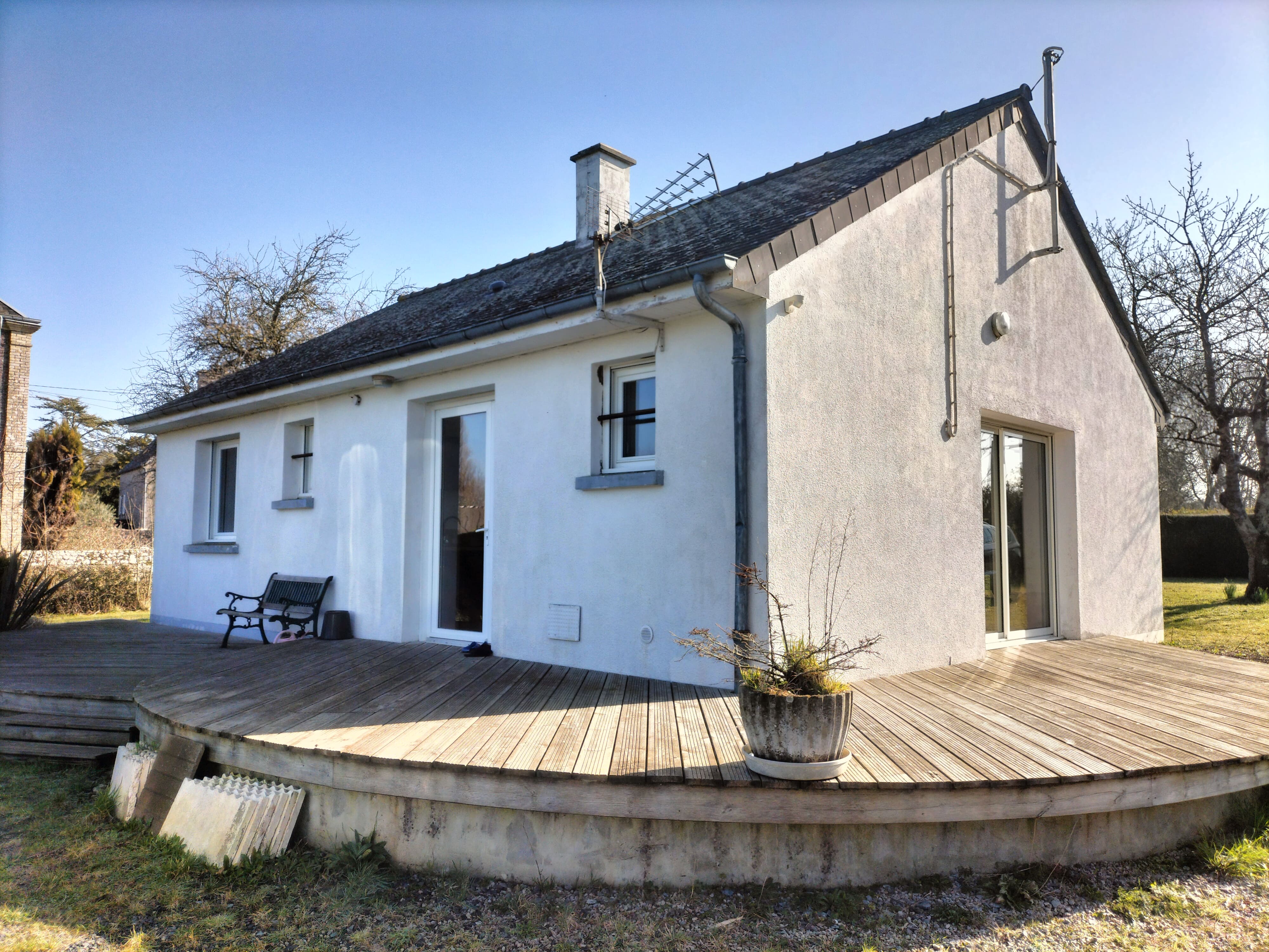 En campagne , proche mer Une maison de plain-pied comprenant : - une cuisine aménagée et équipée ouverte sur un séjour, couloir, trois chambres, une salle d'eau avec wc., buanderie. Chauffage électrique. Terrasse en bois. Garage et débarras. Jardin et verger.