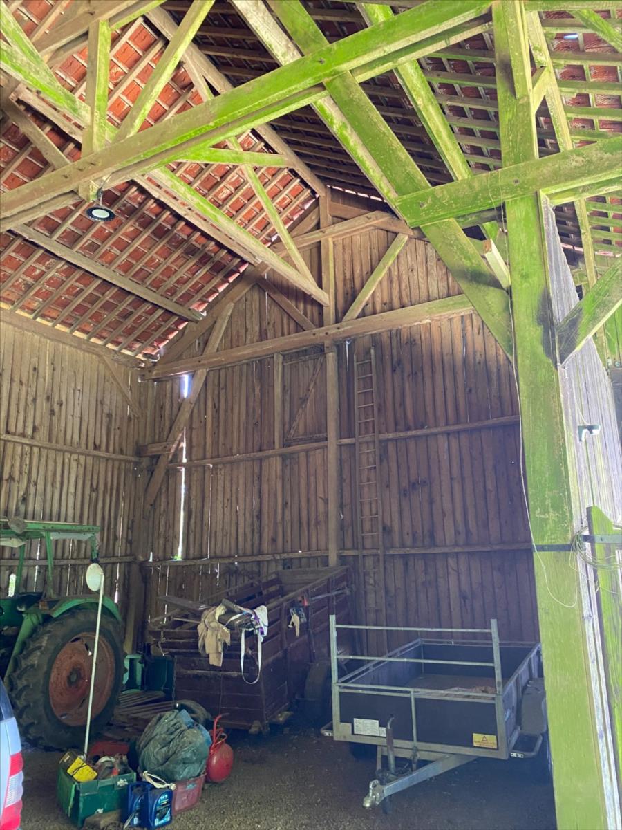 ANCIEN CORPS DE FERME sur 1ha environ, au calme et au bout d'un chemin: MAISON D'HABITATION : - au RDC: entrée, salon avec cheminée, séjour ouvert sur cuisine aménagée, chambre, salle de bain, wc. - à l'étage: grand grenier accessible par l'extérieur Chauffage central gaz en citerne - Raccordée à une fosse toutes eaux GRANGE : garage, caves, atelier, écuries, petites bergeries HANGAR  Nombreux fruitiers. Les informations sur les risques auxquels ce bien est exposé sont disponibles sur le site Géorisques : www. georisques.gouv.fr.