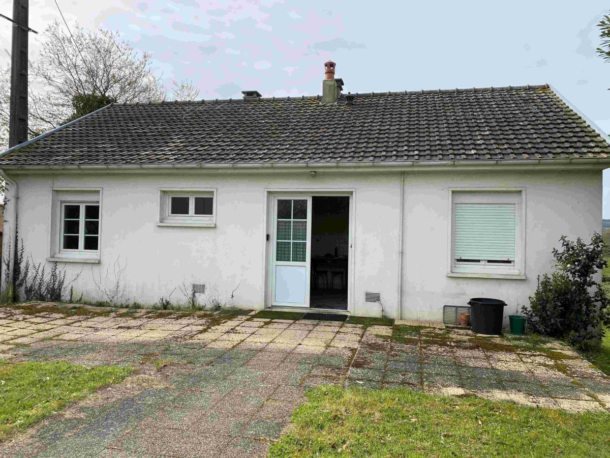 VILLEDIEU LES BAILLEUL: Maison contemporaine d'environ 70 m² sur 553 m² de terrain, comprenant au rez-de-chaussée, entrée, couloir, cuisine salle à manger, salon, wc, salle d'eau, deux chambres, grenier sur l'ensemble, sous sol complet à usage de cave et garage, chauffage électrique, double vitrage, prix 95 950€ honoraires de négociation à la charge du vendeur